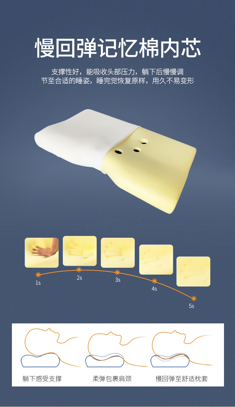 外枕套:55%聚酯纤维 45%粘胶纤维(提花空气层);