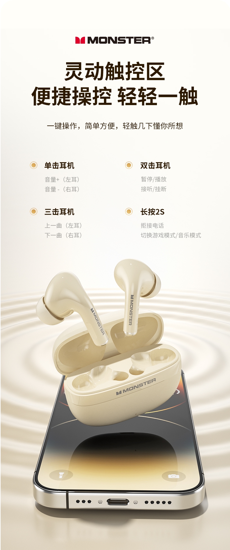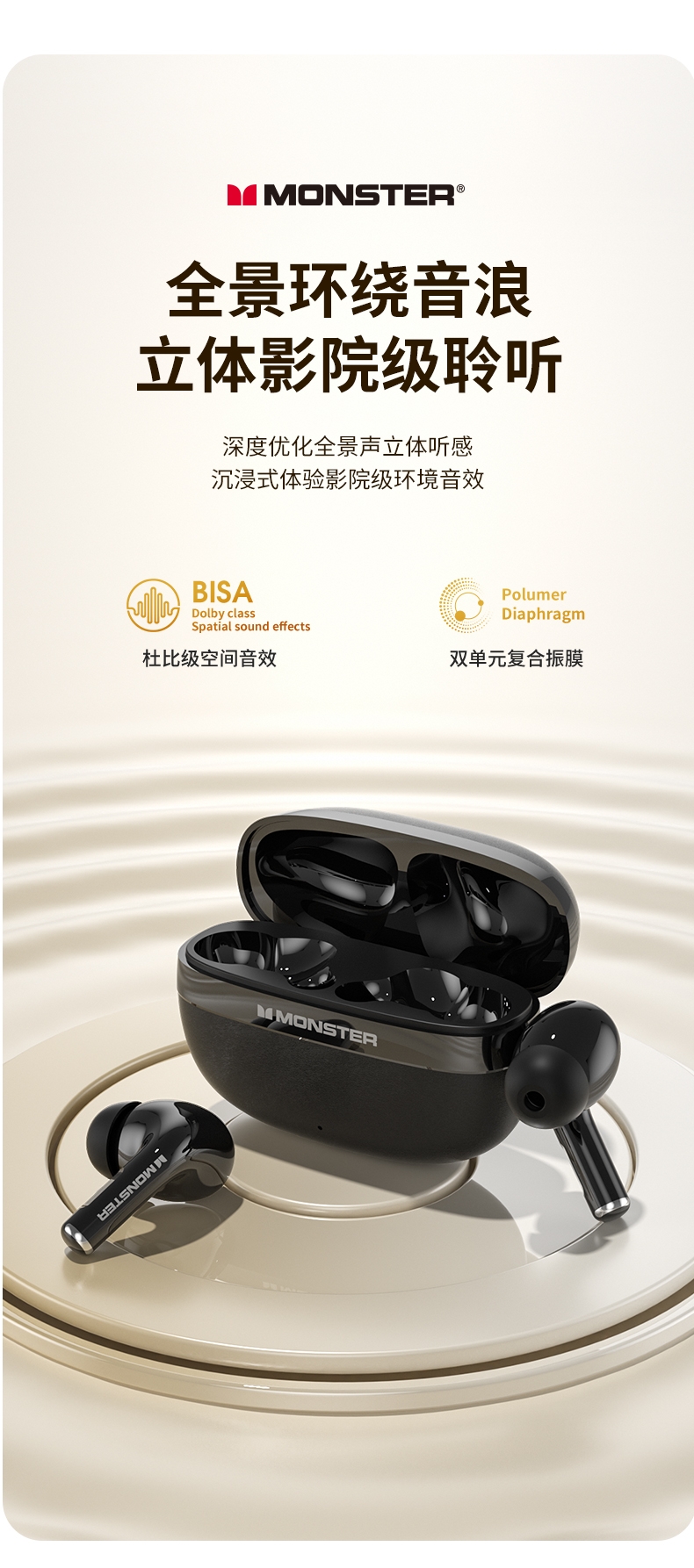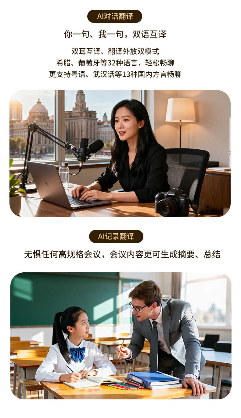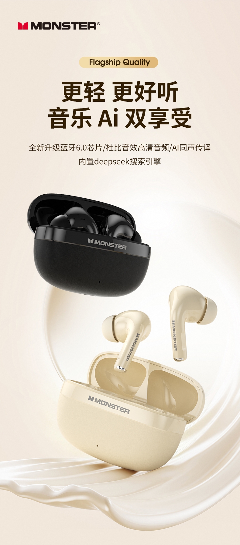 TWS入耳式设计,三频腔体结构,超感还原,杜比听感;智能算法降噪麦克风,高清通话,低延迟,音画同步;专属定制APP,50大热门AI模型助力,AI免费用