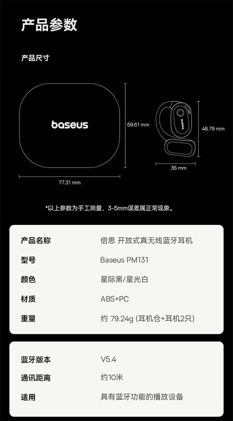 倍思 开放式真无线蓝牙耳机PM131