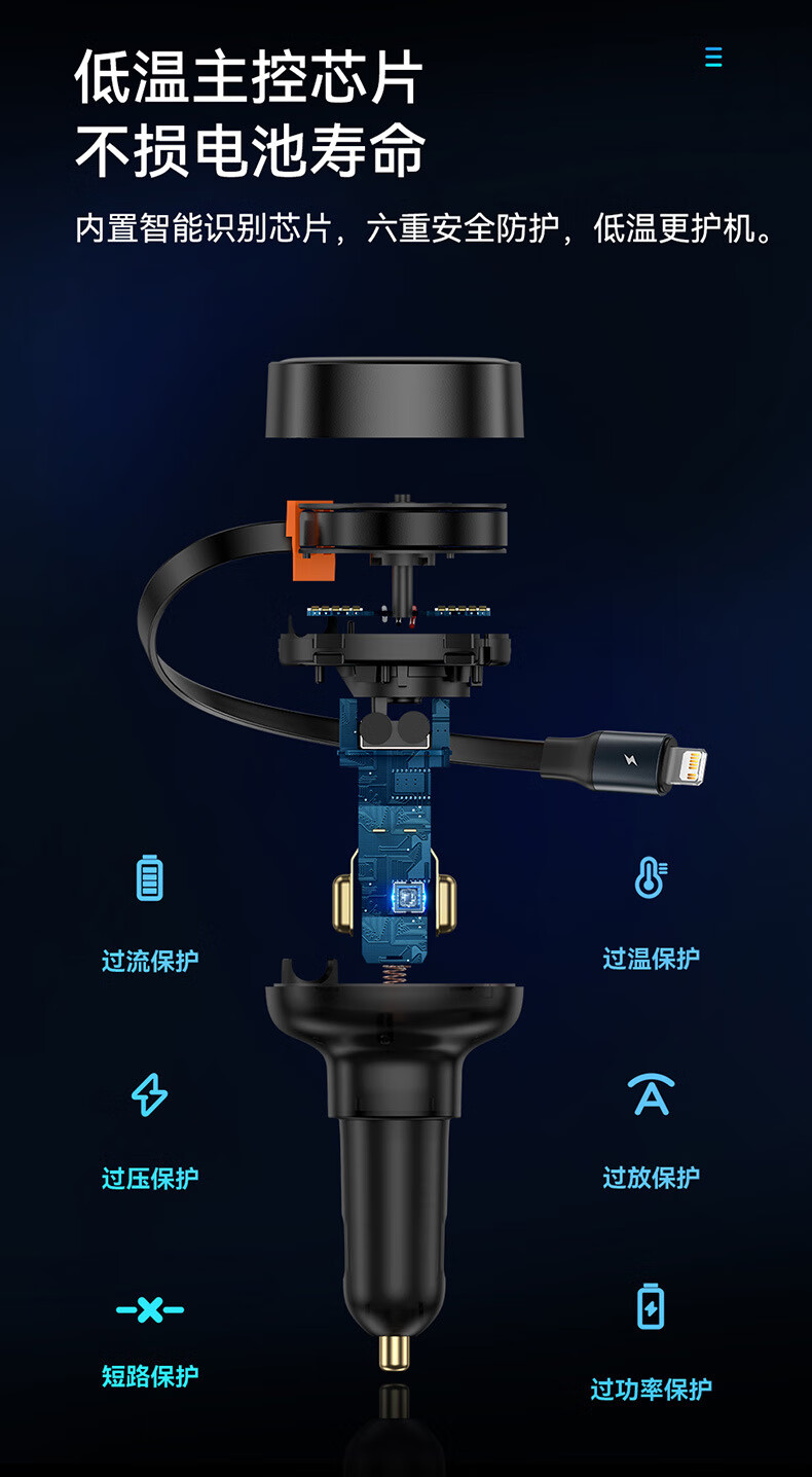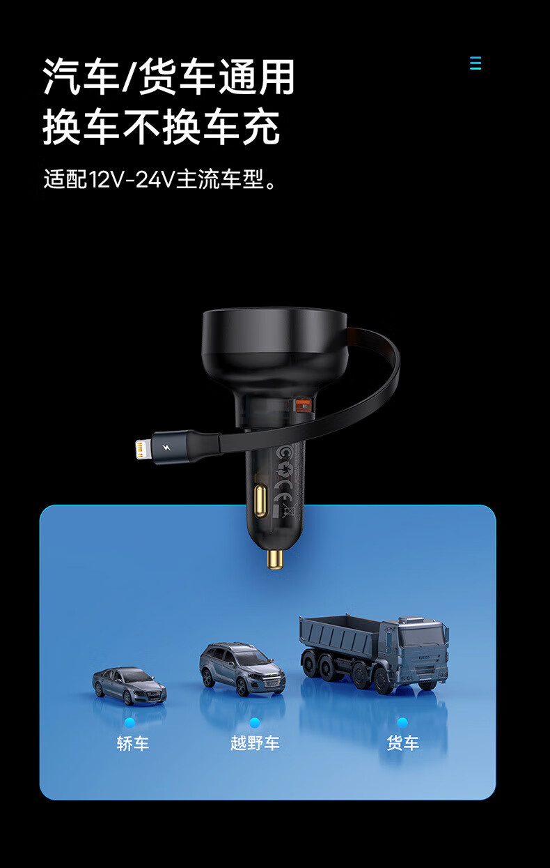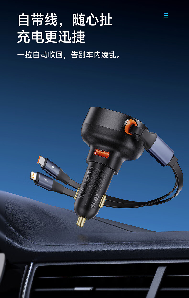 伸缩自如 松开手 自动收纳;夜晚充电 一眼能看见;加长防滑弹片 不怕颠簸弹出