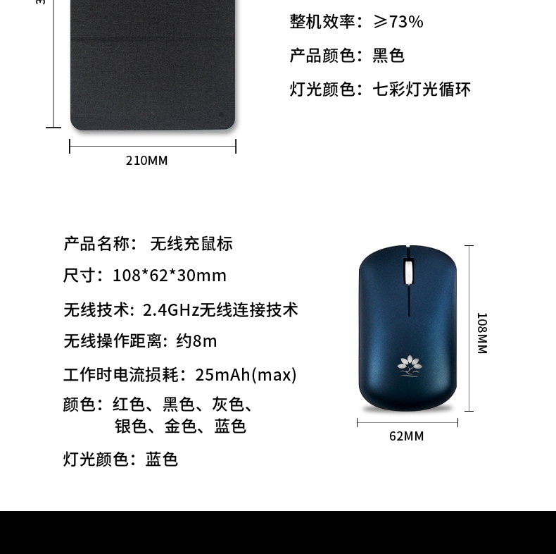 配置清单: 无充充鼠标垫*1 无线充鼠标*1 礼盒*1 手提袋*1