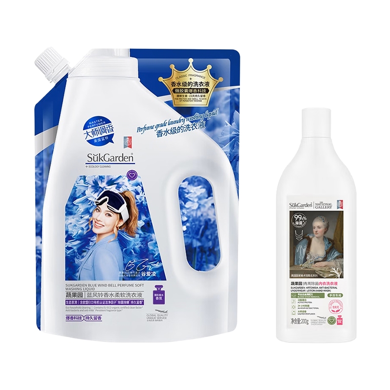 配置清单:滋源无患子控油清爽洗头水60ml 滋源无患子控油清爽护发素60ml SukGarden蔬果园蓝风铃香水柔软洗衣液500g SukGarden蔬果园青蒿除菌内衣洗衣液200g 精美PVC袋子