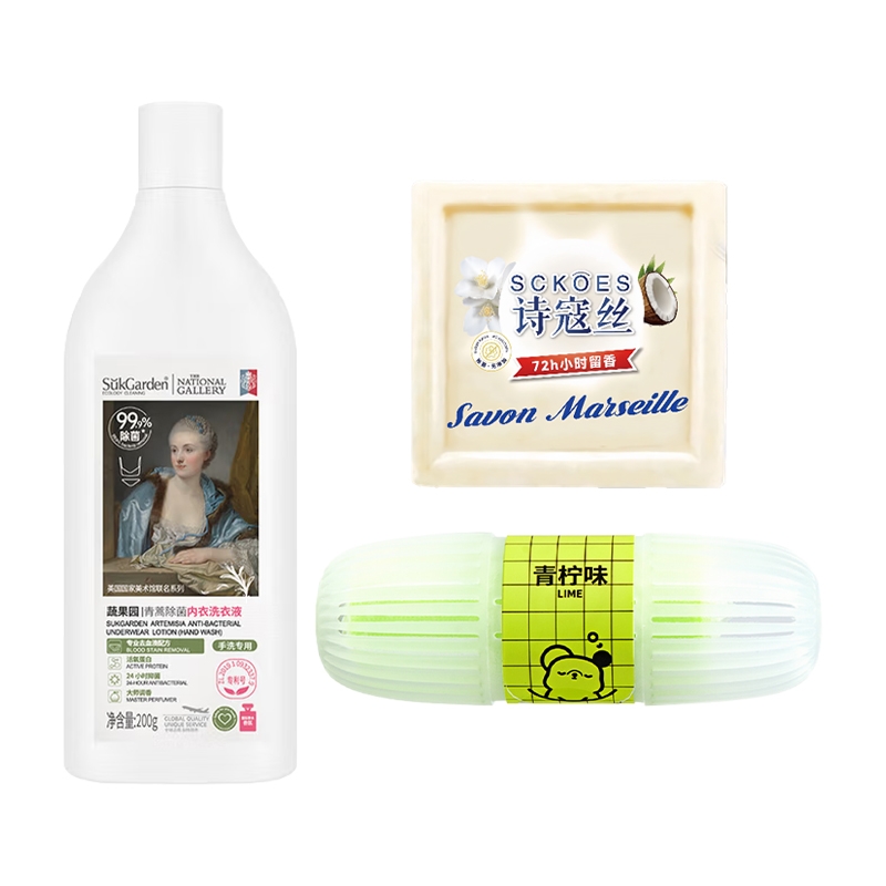 柏缇便携洗护 + 滋源护发素,氨基酸植萃双配方呵护;青蒿内衣除菌 + 抑菌皂,贴身清洁抑菌防护双保障;配马桶挂篮 + 精美礼盒,居家洗护清洁需求全覆盖