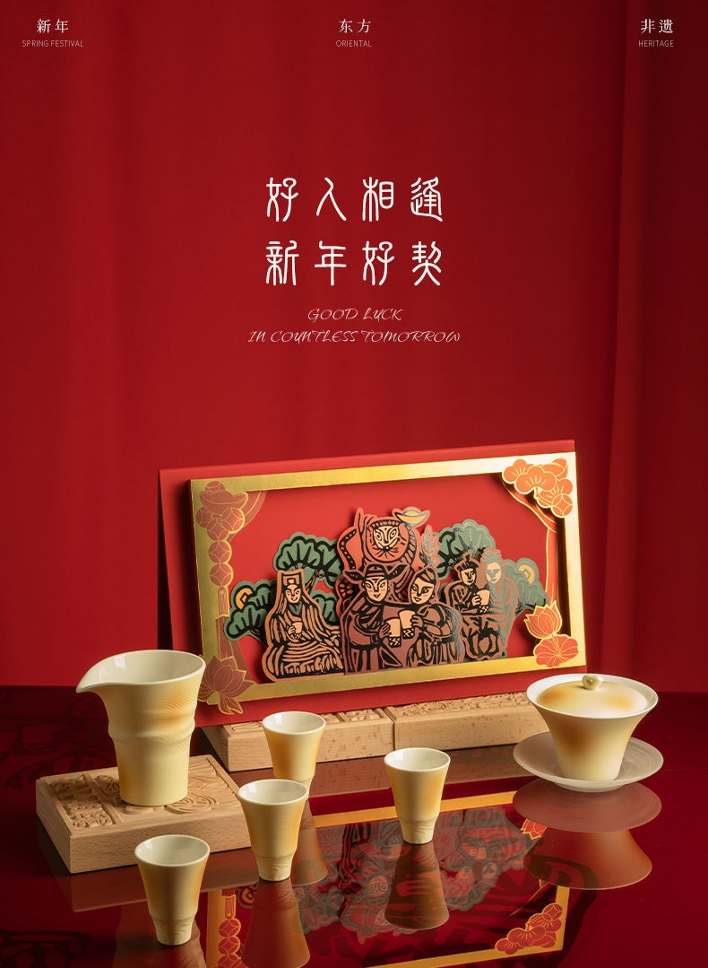 非遗甲马纸雕桌面摆画:长366*宽215MM