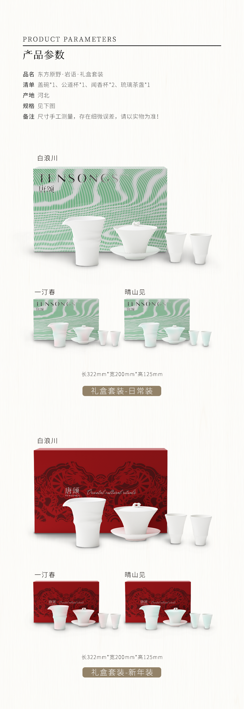 配置清单:精品包装*1 精品手提袋*1 盖碗*1(110ml) 琉璃茶盏*1 公道杯*1(150ml) 闻香杯*2(35ml)