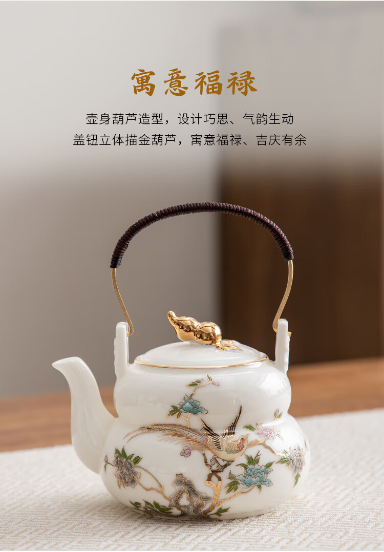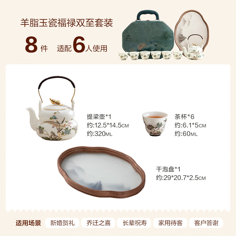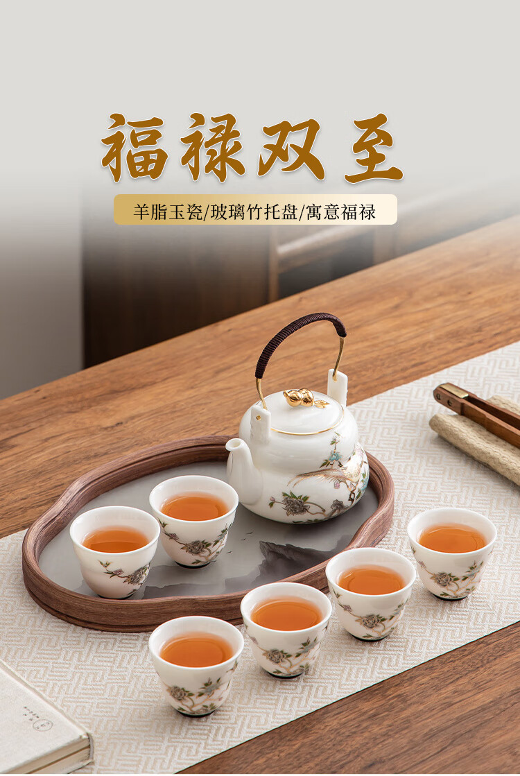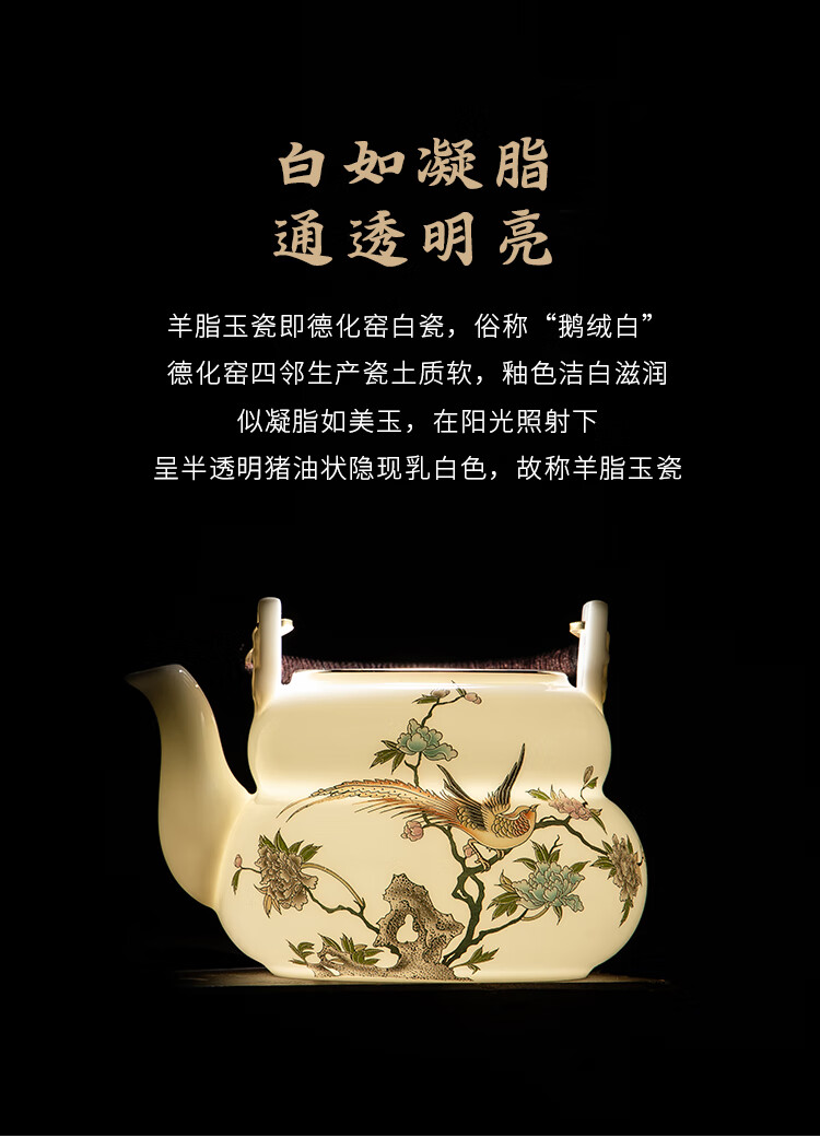 羊脂玉瓷 玻璃竹托盘 大容量更便捷;葫芦造型 寓意福禄吉祥 ;描金工艺国风礼盒 描绘工整 古韵典雅