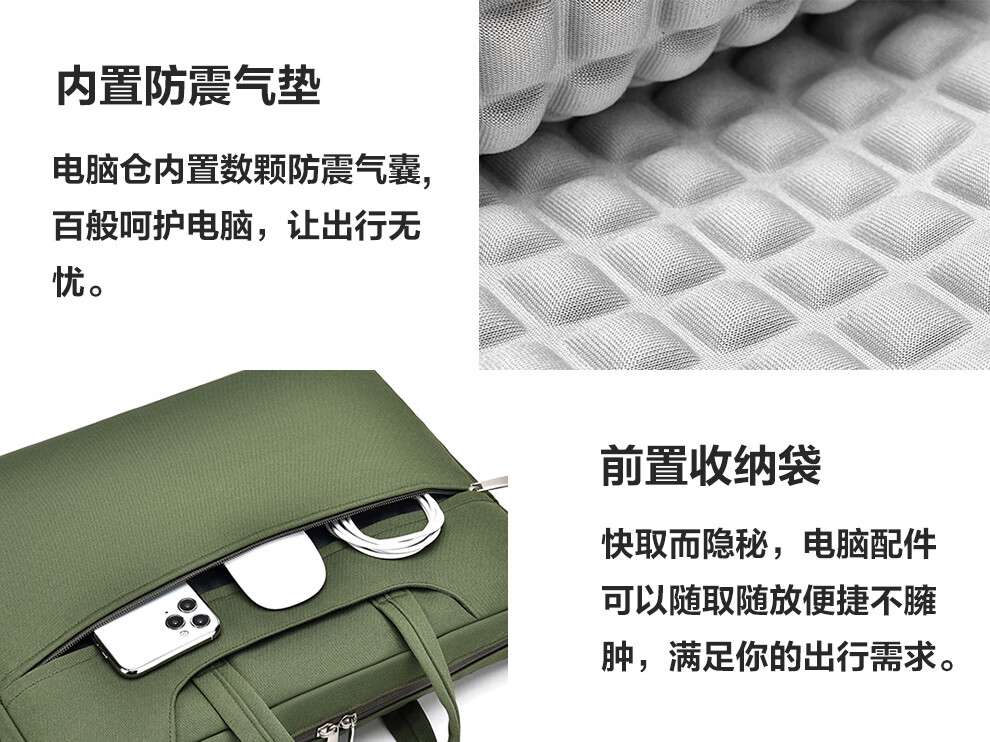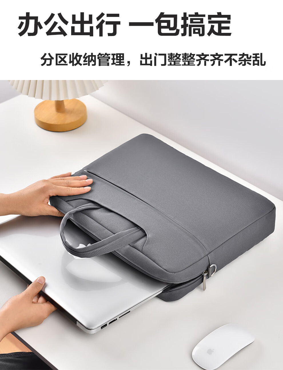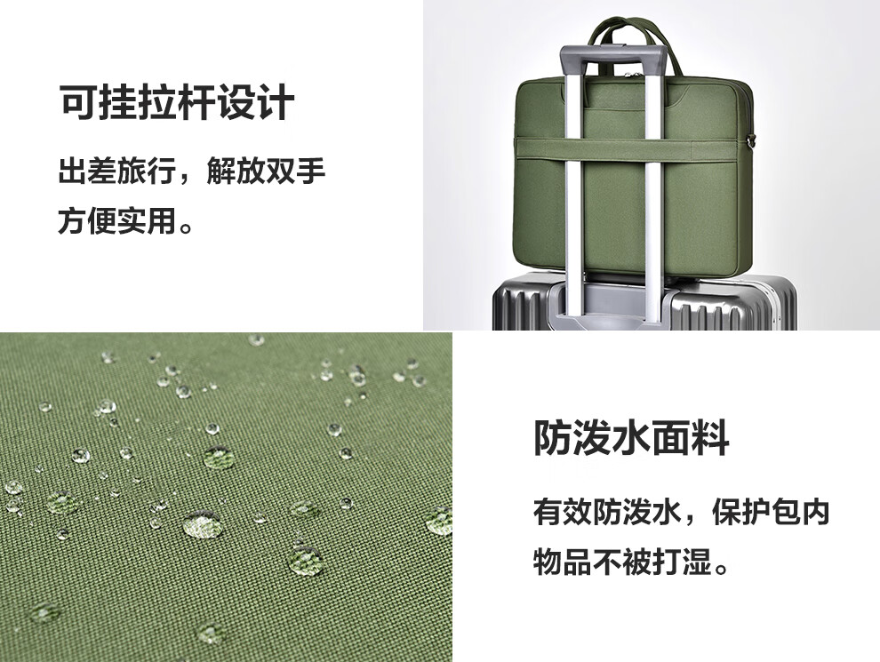商务手提 · 时尚干练 加厚内里;柔软手提,舒适不勒手,可挂行李箱拉杆;让出行更省力,商务办公,一包搞定