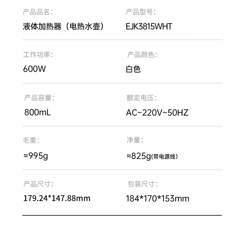 乐扣乐扣 折叠烧水壶0.8LEJK3815WHT
