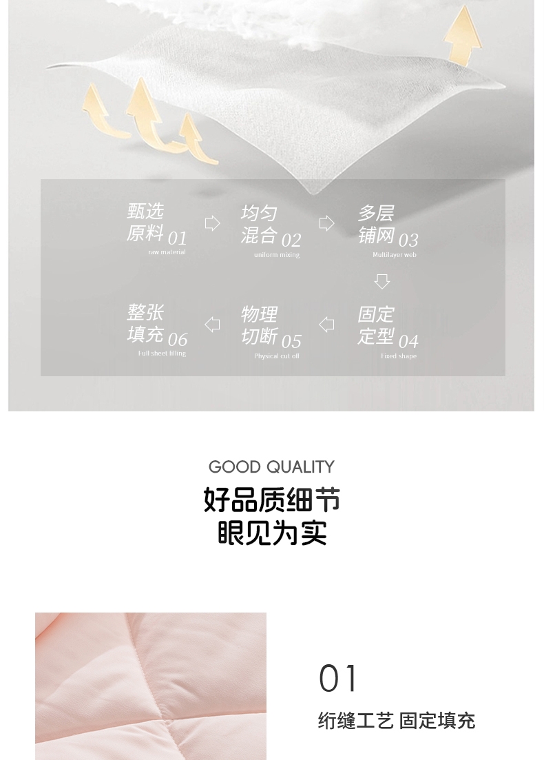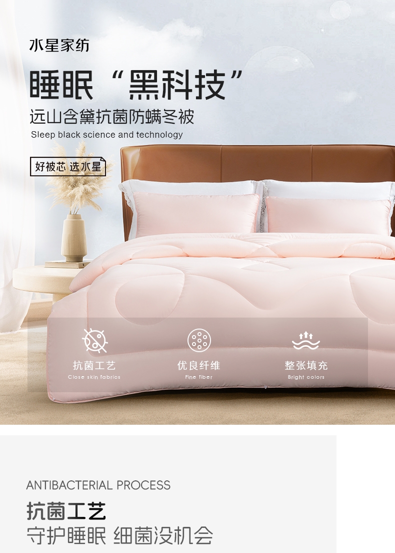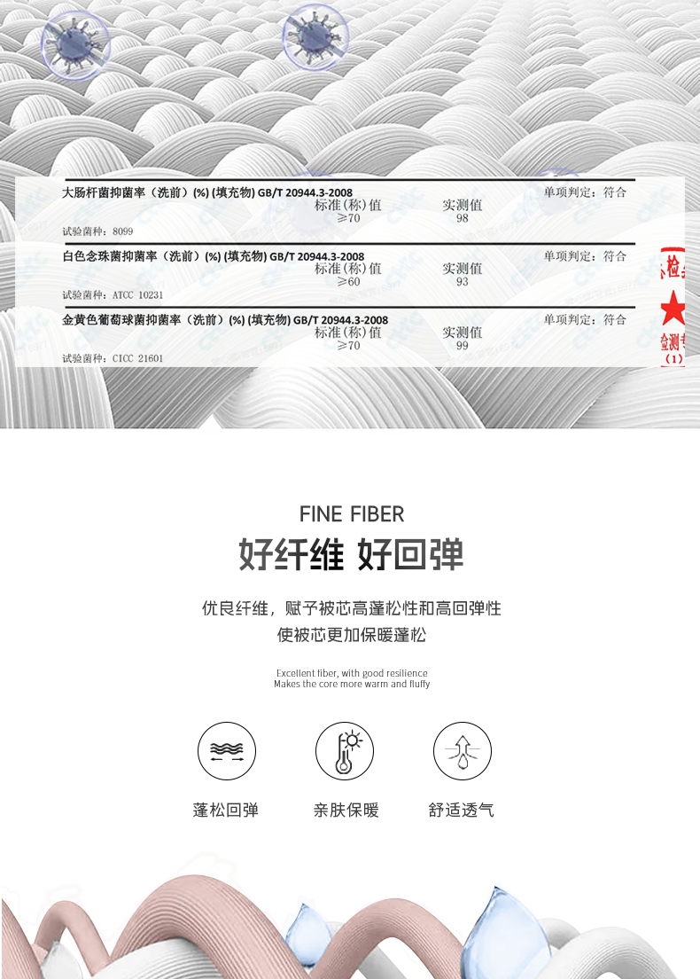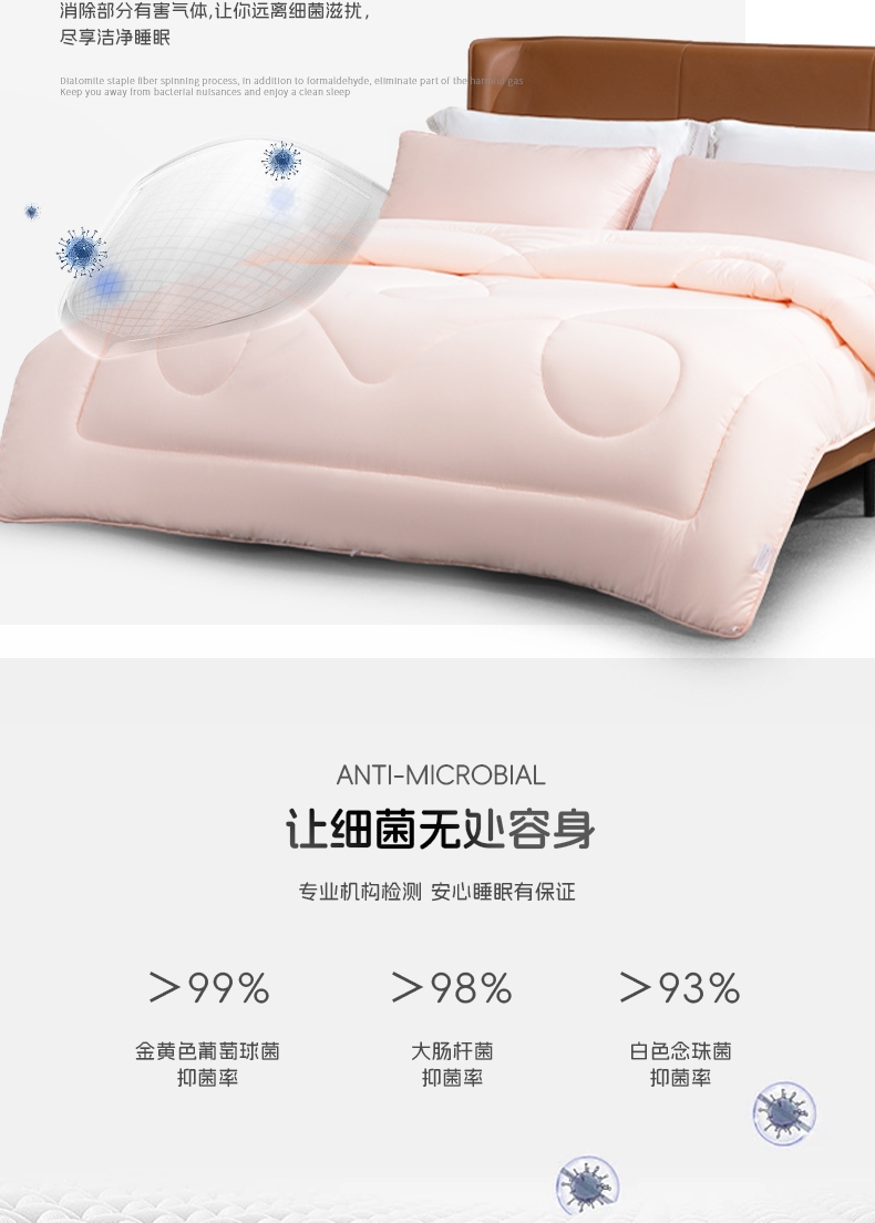 优质面料,柔软透气;抗菌防螨,安心睡眠;柔软亲肤,手感顺滑