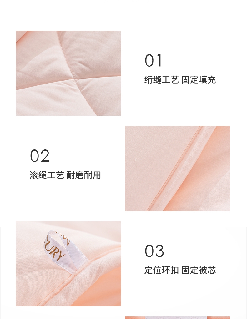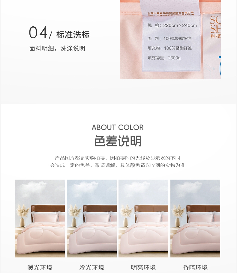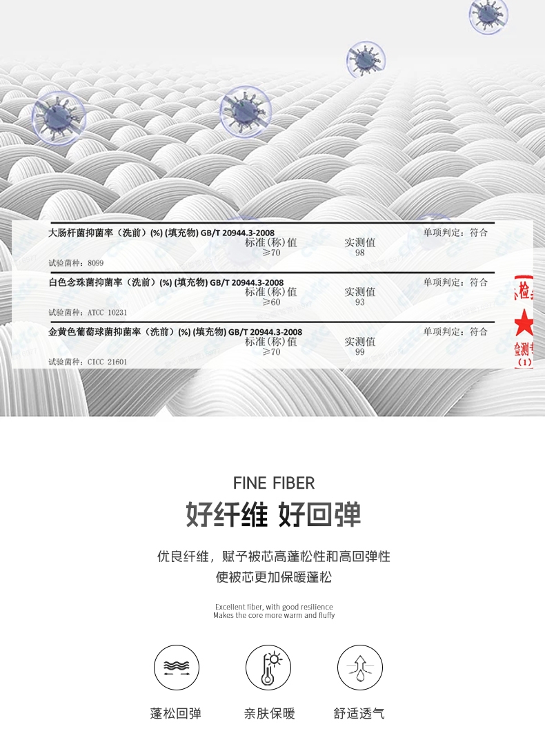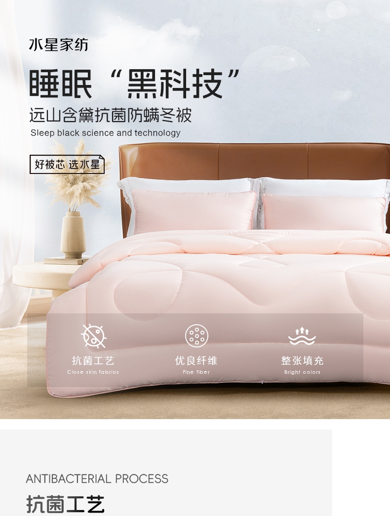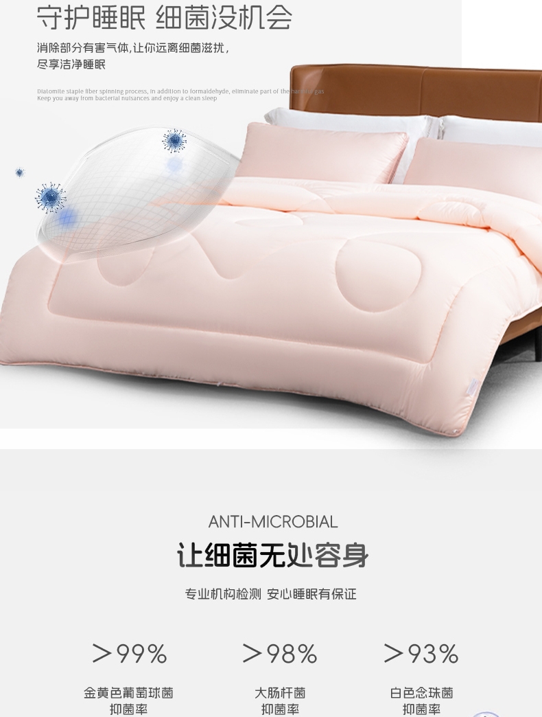 优质面料,柔软透气;柔软亲肤,手感顺滑;抗菌防螨,安心睡眠