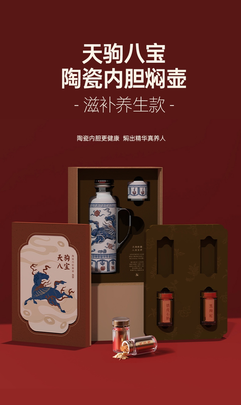 天驹八宝 陶瓷内胆焖壶;陶瓷内胆更健康 焖出精华真养人;马年礼 送体面也送好意头