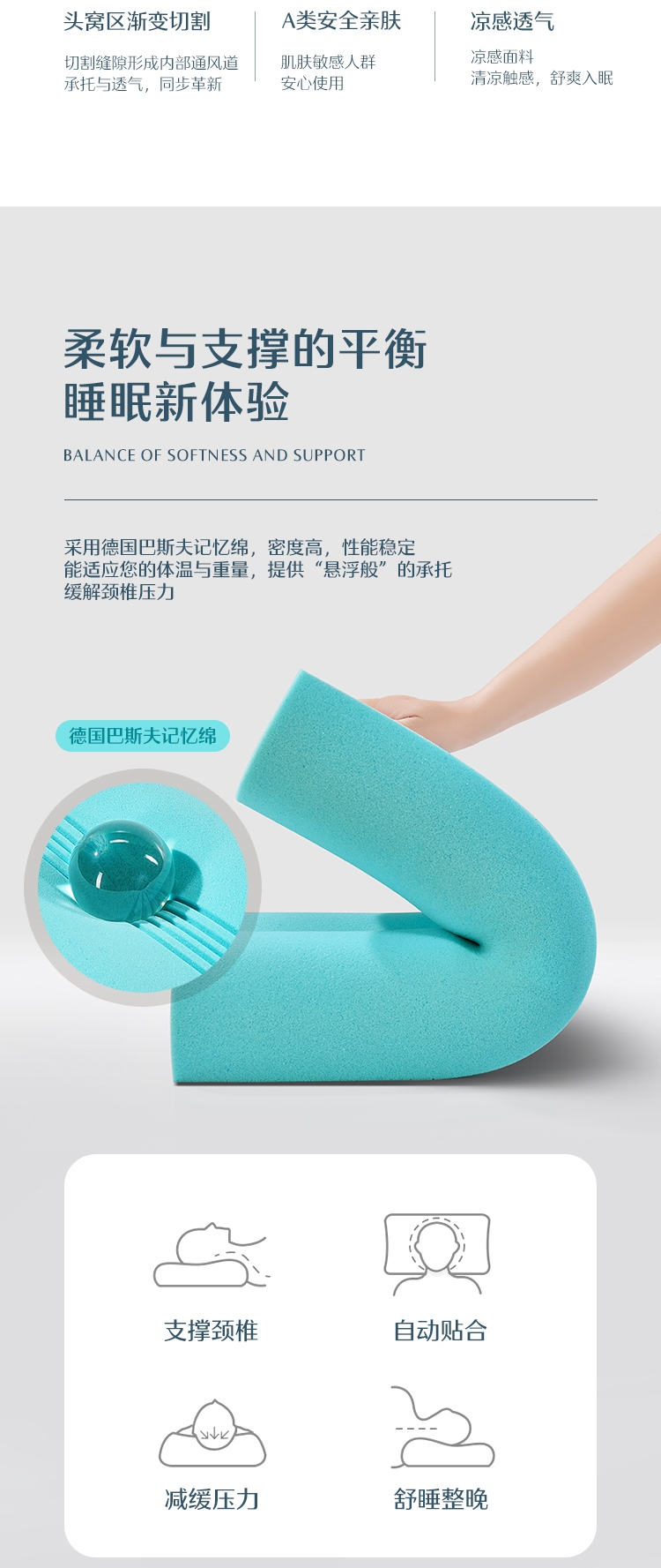 德国巴斯夫记忆绵;A类标准凉感面料;抑制细菌螨虫,健康舒适