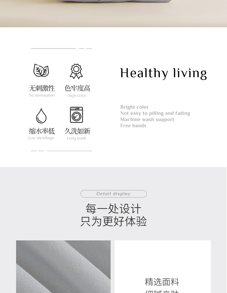 品质面料,磨毛工艺;细密短绒兼顾温暖与舒适;精细工艺,AB双色