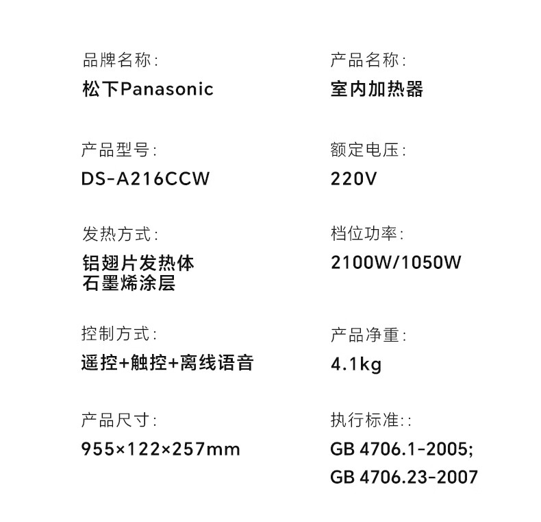 松下 战斗机踢脚线取暖器氛围灯DS-A216CCW