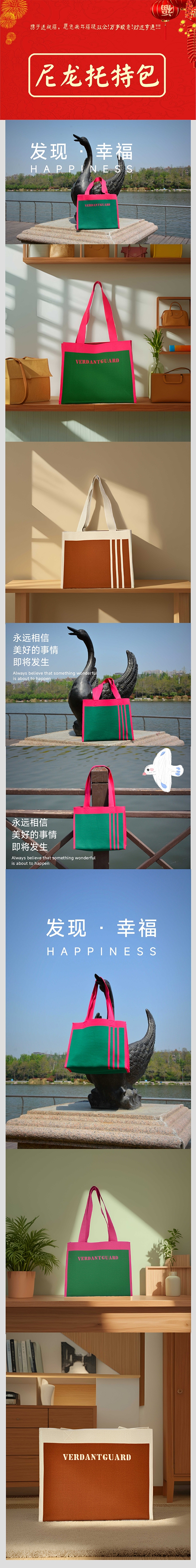 配置清单:尼龙托特包*1,高档礼盒*1,OPP袋*1,无纺布袋*1