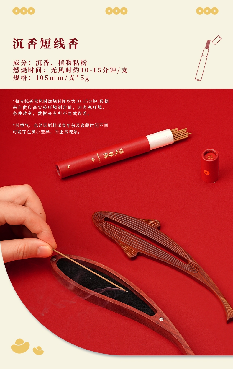 独特的文化创意设计;雅致的熏香主题器物;每支线香无风时燃烧时间约为10-15分钟