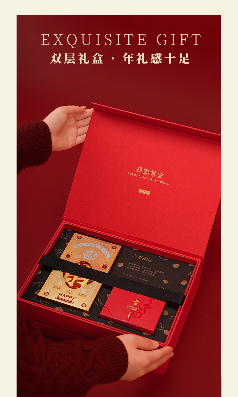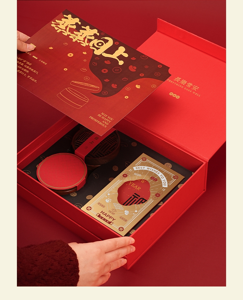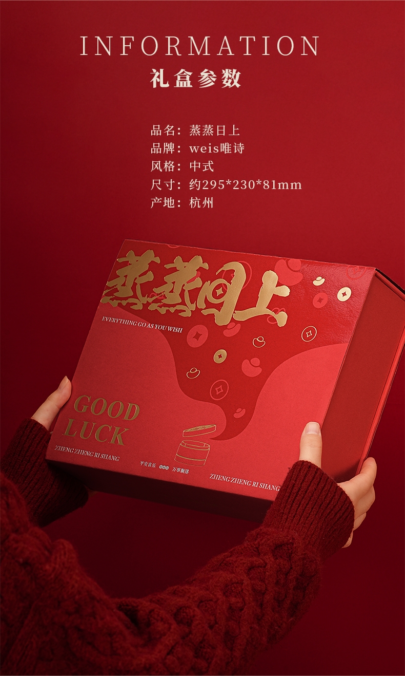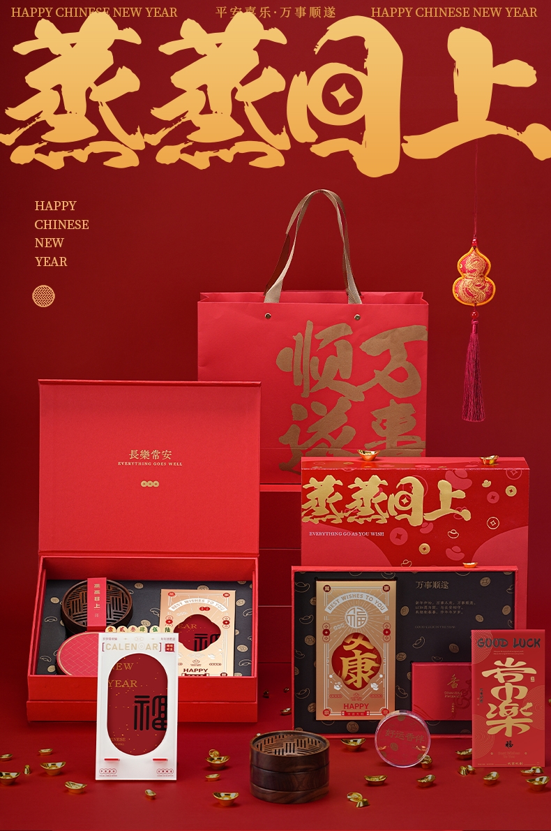 配置:·蒸蒸日上香器×1 ·西澳檀香×1(十盘装) ·桂花香囊×1 ·新年红包×6 ·新年日历×1 ·使用说明×1