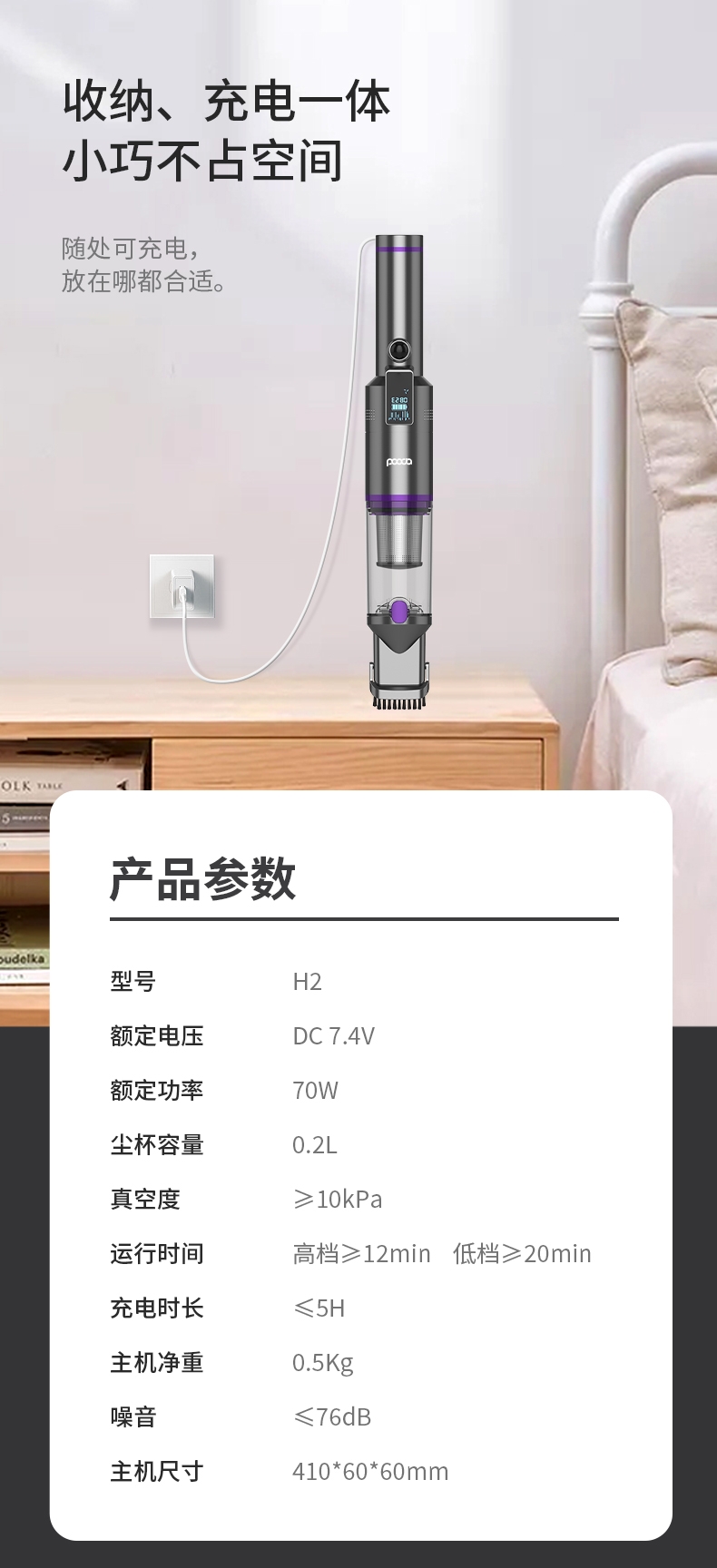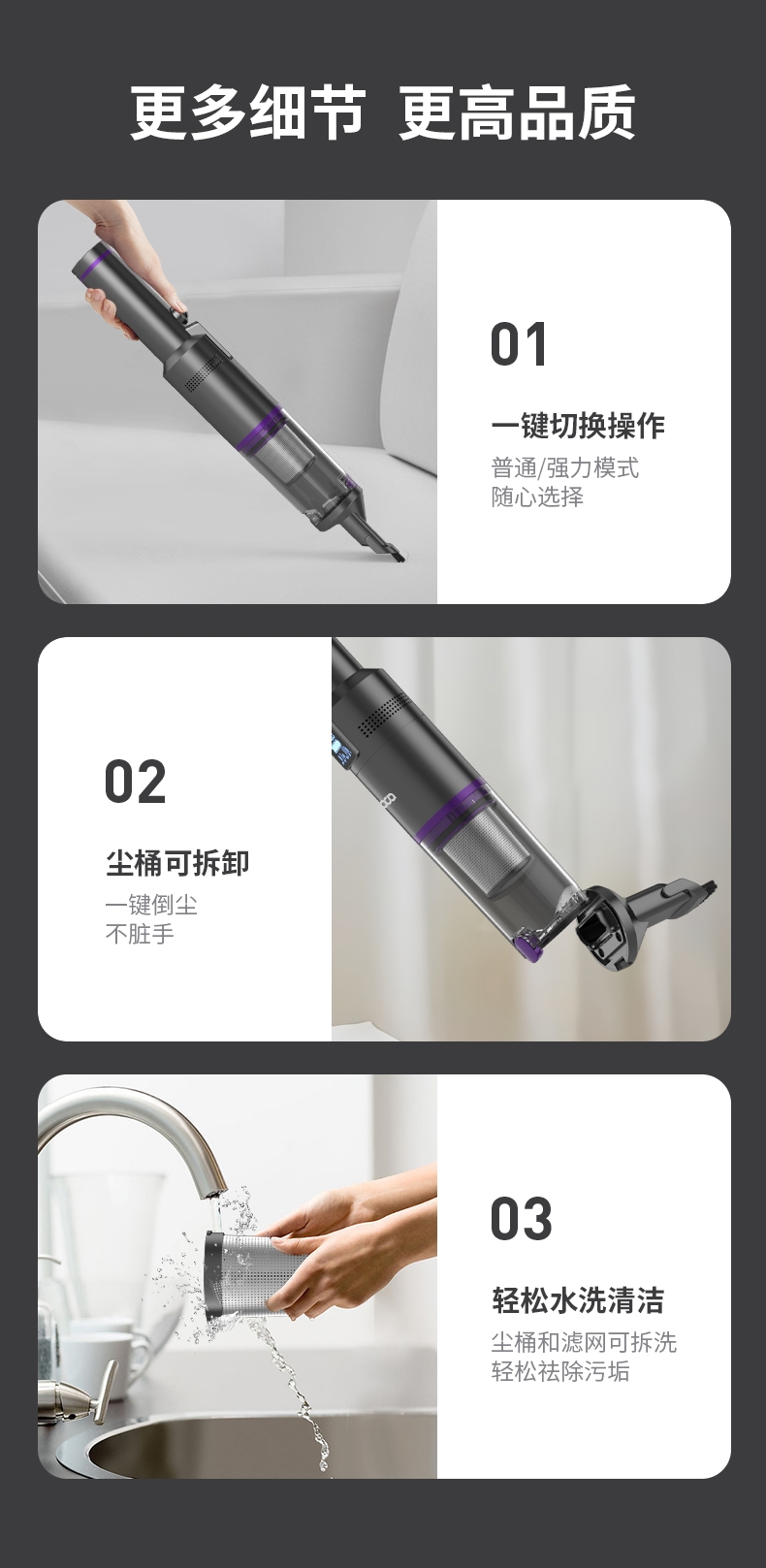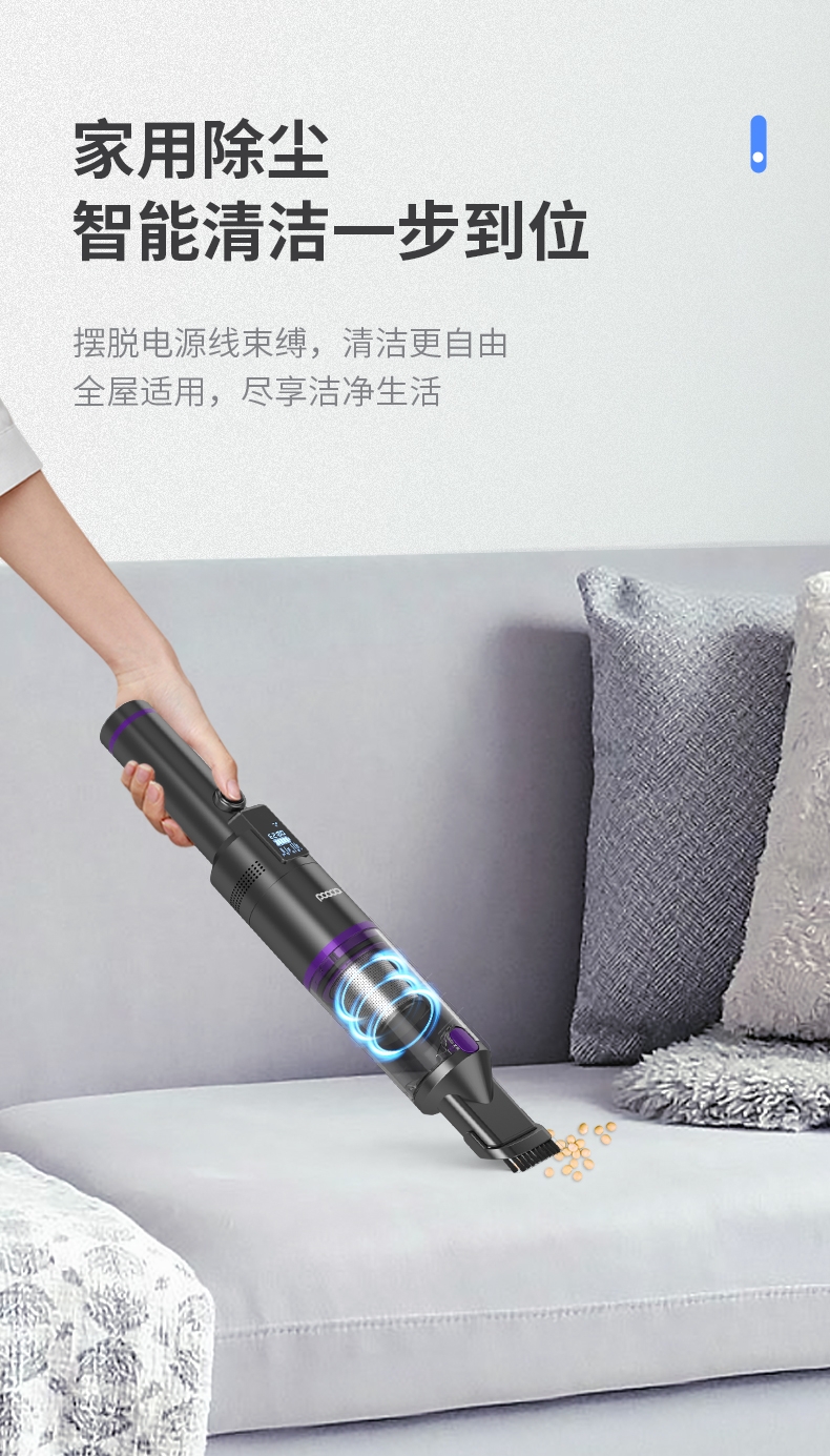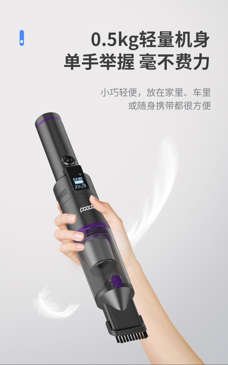 Type-C充电便捷易携带;数码无刷电机强劲吸力;轻盈小巧机身易收纳易携带