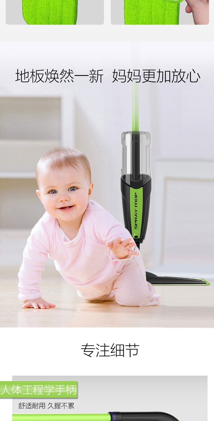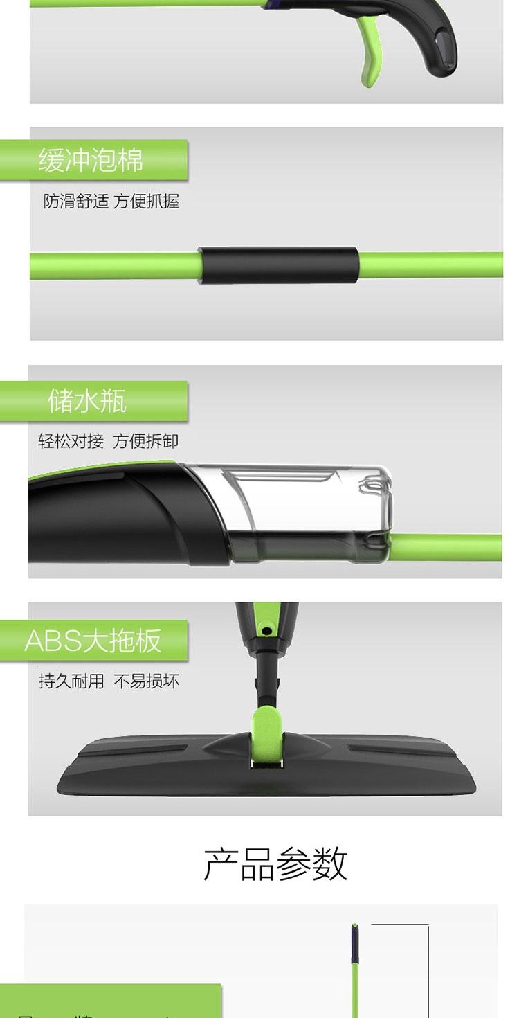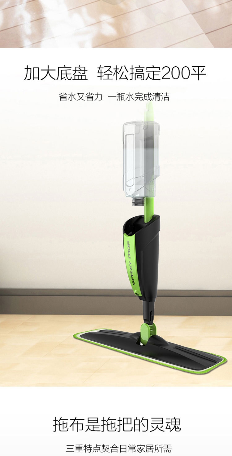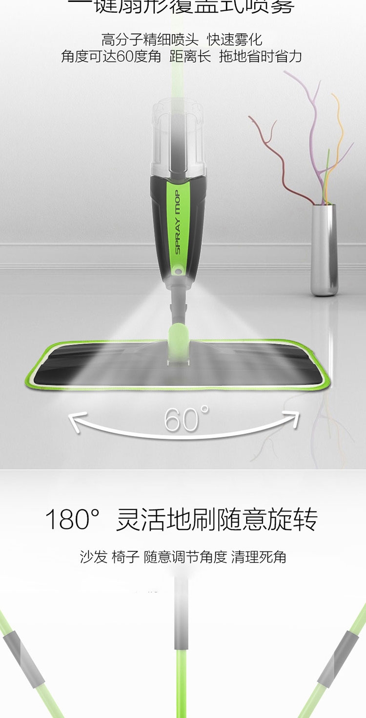 喷拖一体省时省力;360°旋转拖头深入清洁;加厚强力吸水碳纤维拖布易清洗