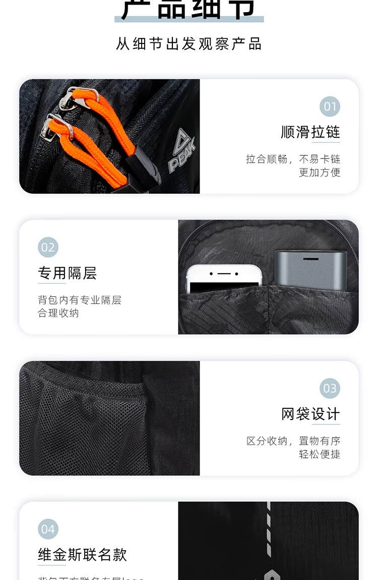 .大容量包型,科学的收纳空间,稳固的外挂系统;轻量化包身,外形时尚 适用于日常休闲;背部拱桥树脂网悬浮结构设计,包身不紧贴