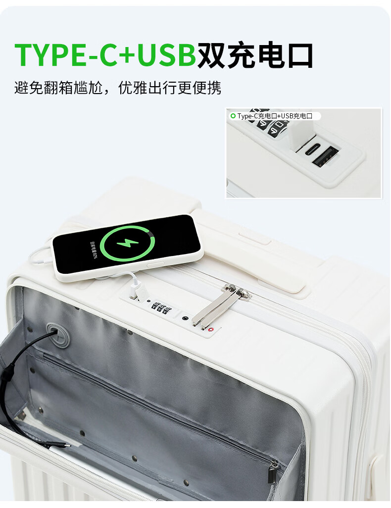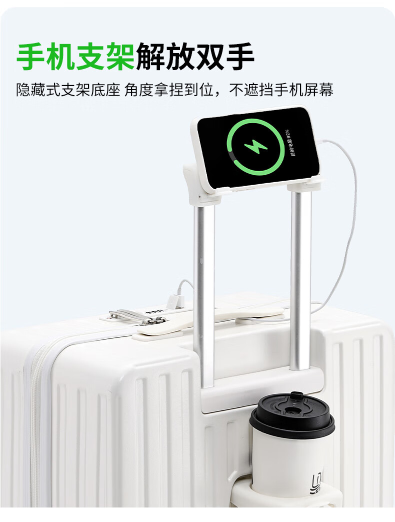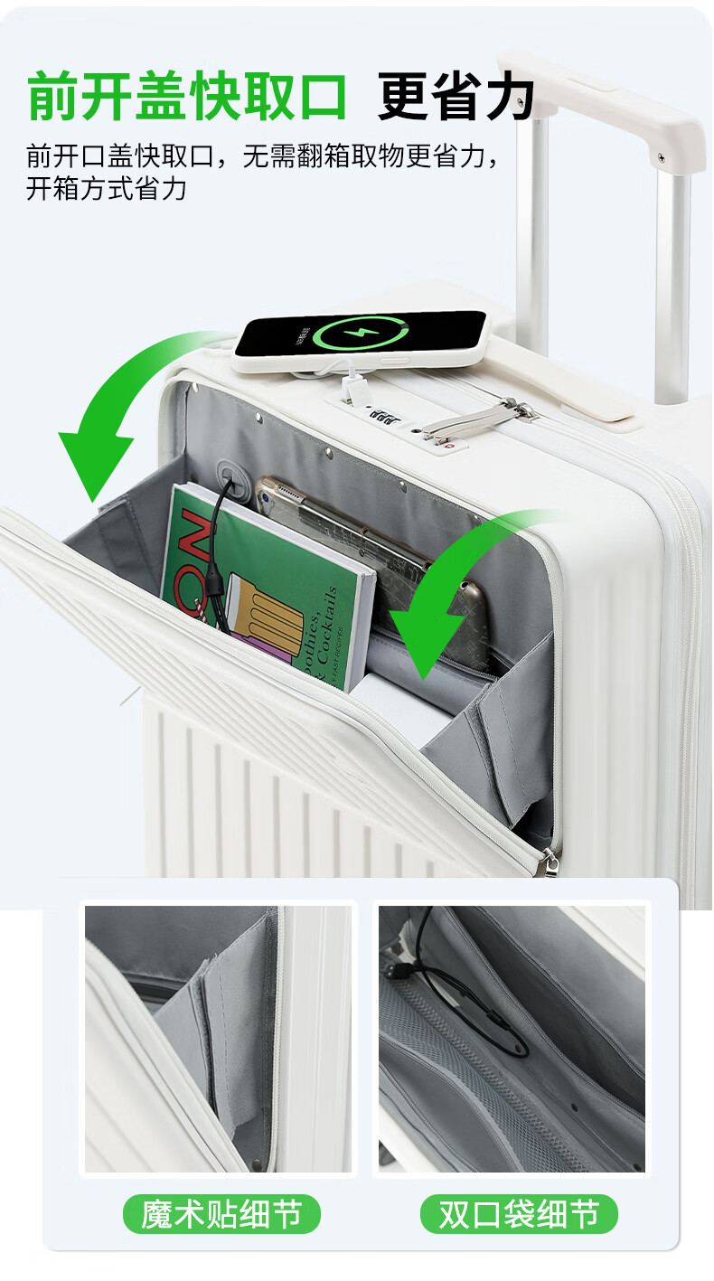 新一代前开盖设计,前开盖快取口更省力;功能新升级边走边充电;侧边贴心挂钩出行随行挂