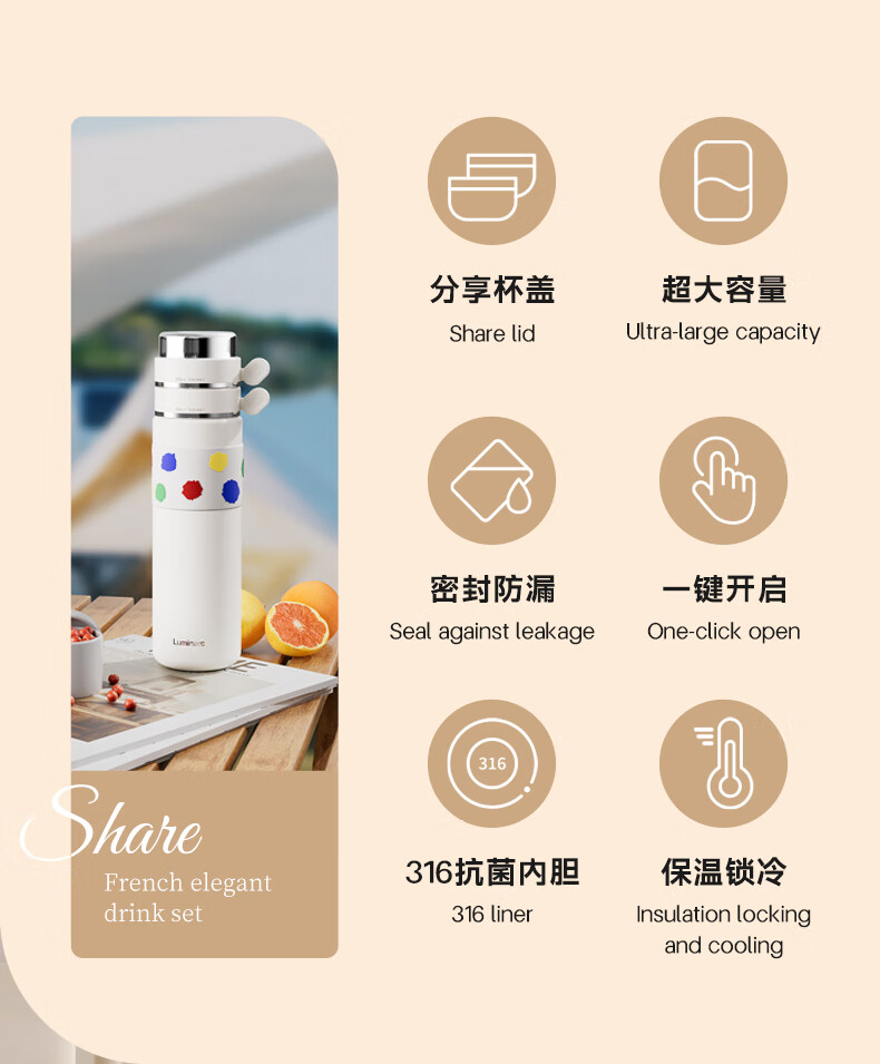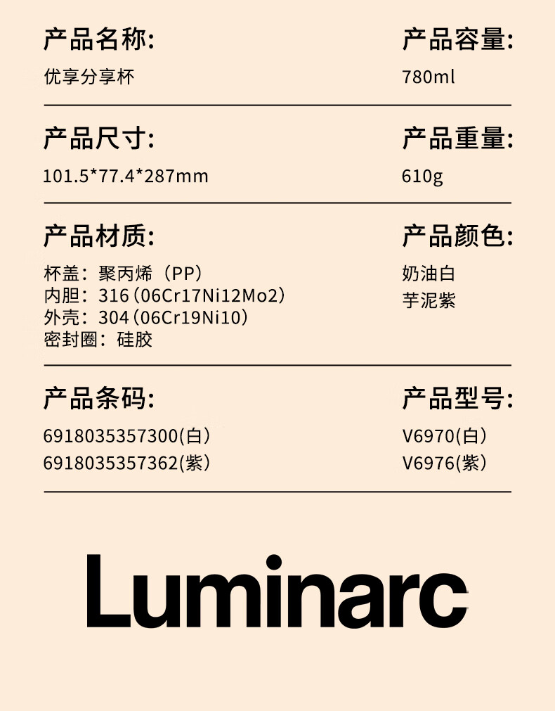 乐美雅 优享分享杯保温杯780mlV6970/V6976