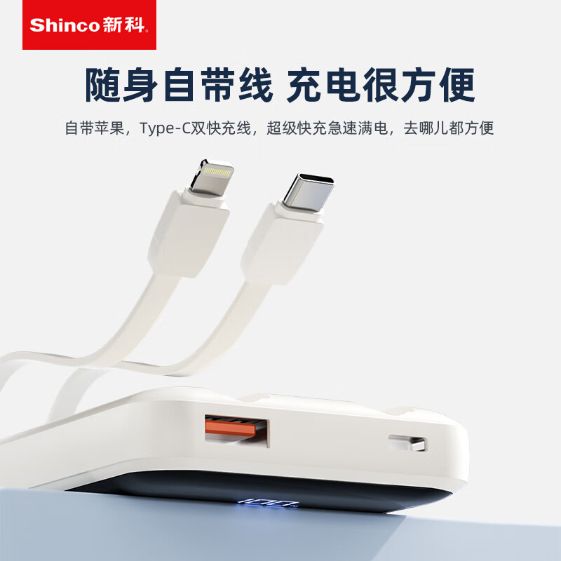 随身自带线、充电很方便,去哪儿都方便;智能数显、电量不盲猜,出门更安心;输入输出皆快充、随时随地都可充满电
