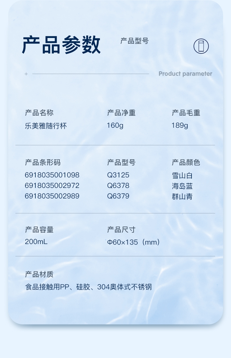 乐美雅 便携保温杯口袋杯200ML Q6378/ Q6379