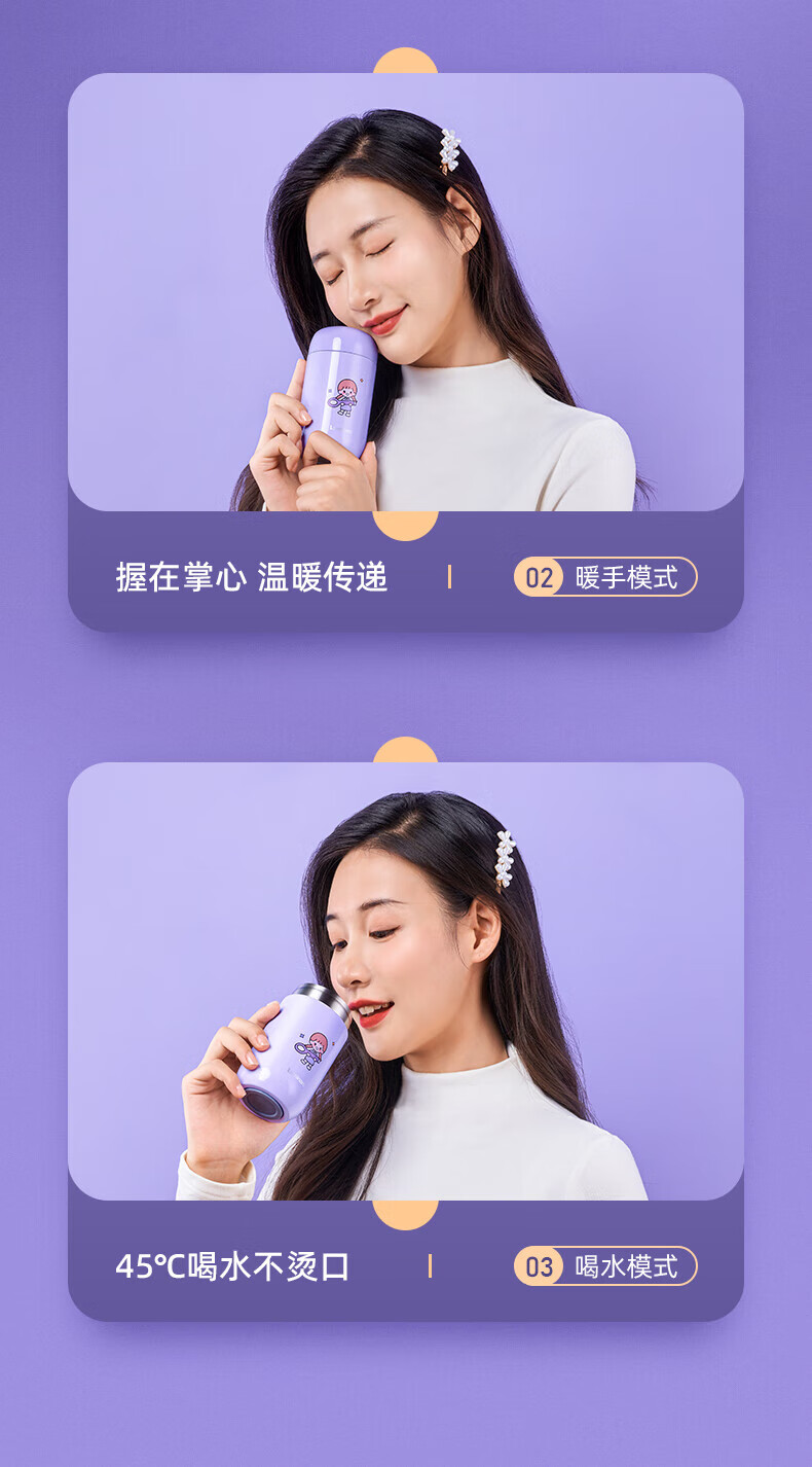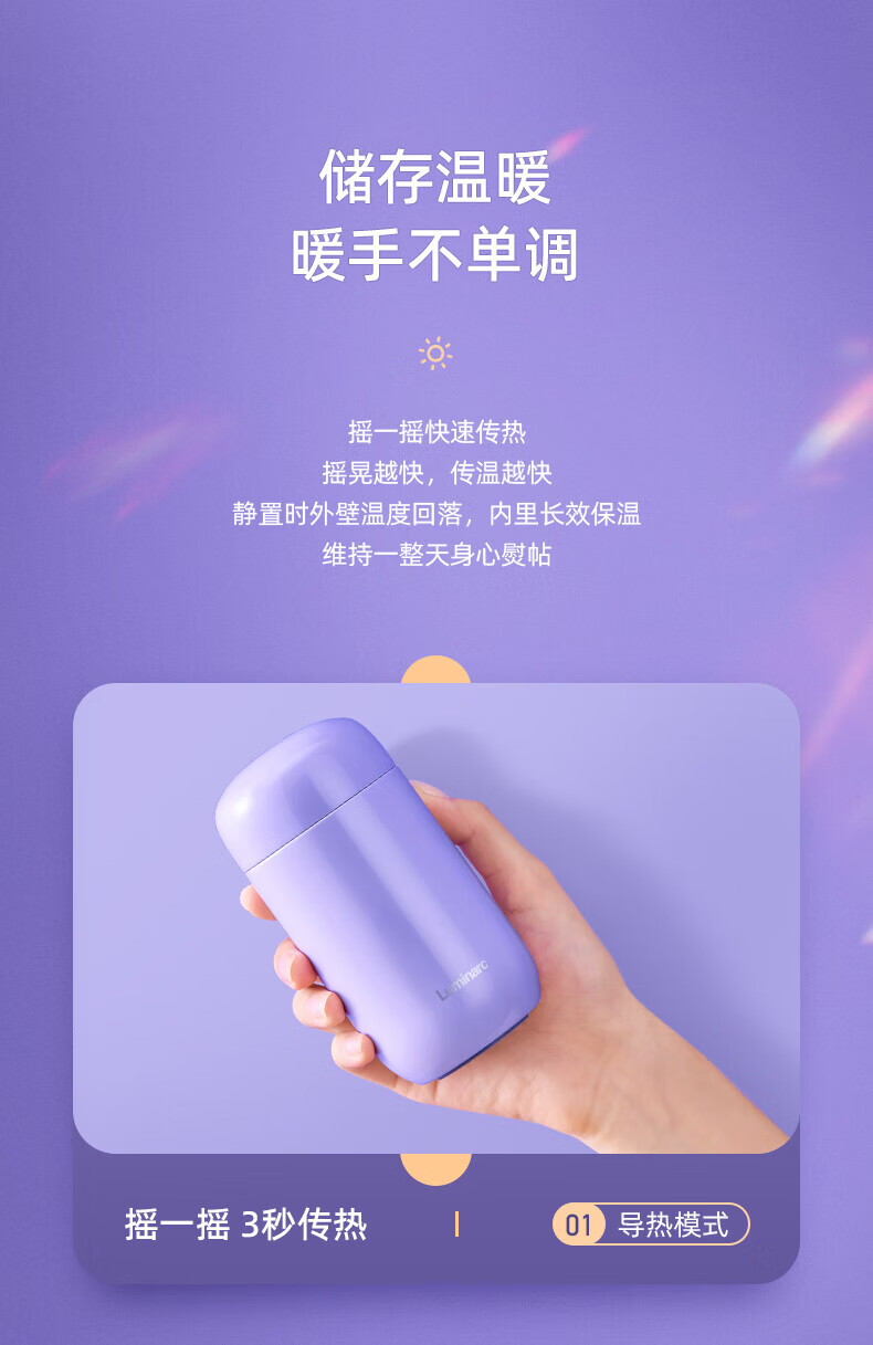 迷你便携,暖手喝水;摇一摇3秒传热,温暖整个冬季;防滑静音硅胶底垫,抗震防摔