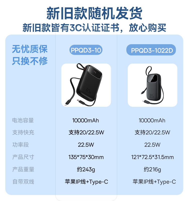 自带C+L双线,兼容多种主流电子设备;LED数显屏,电量清晰可见;第3代全面升级,更小,更快,更安全