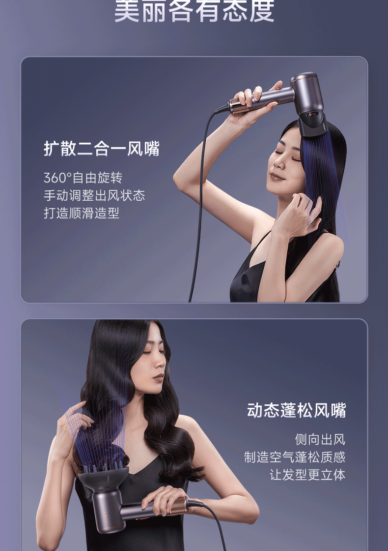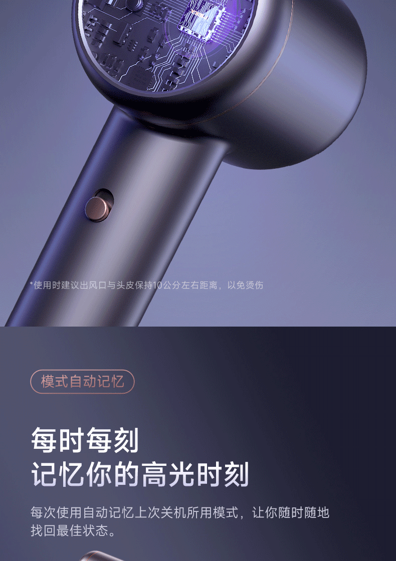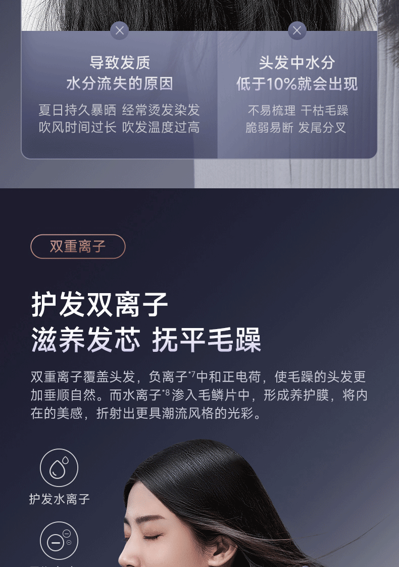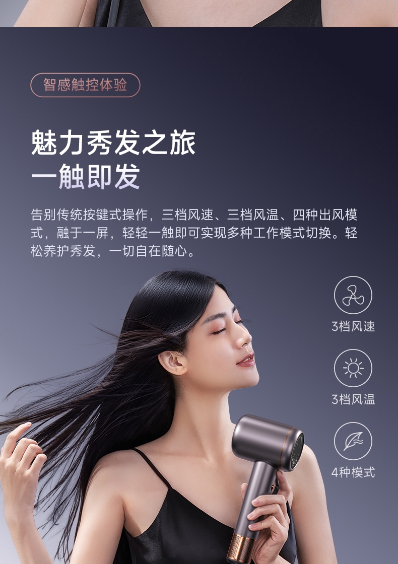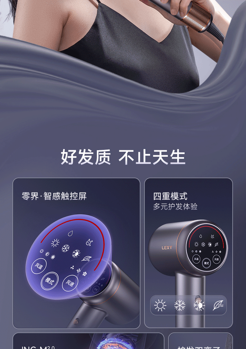 PID控温技术 恒温不伤发;冷热循环模式;负离子除静电去毛躁