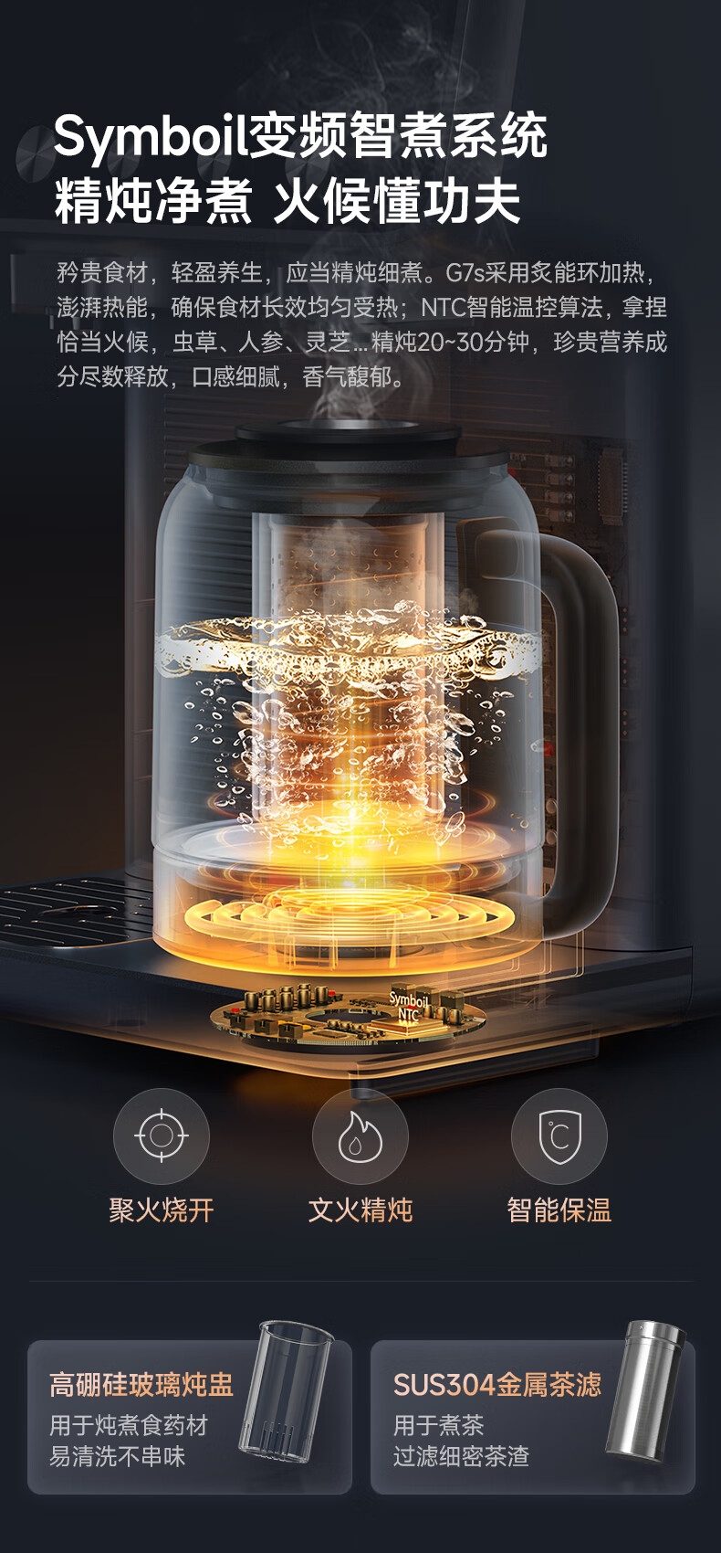 聚火烧开;智能保温;高硼硅玻璃炖盅