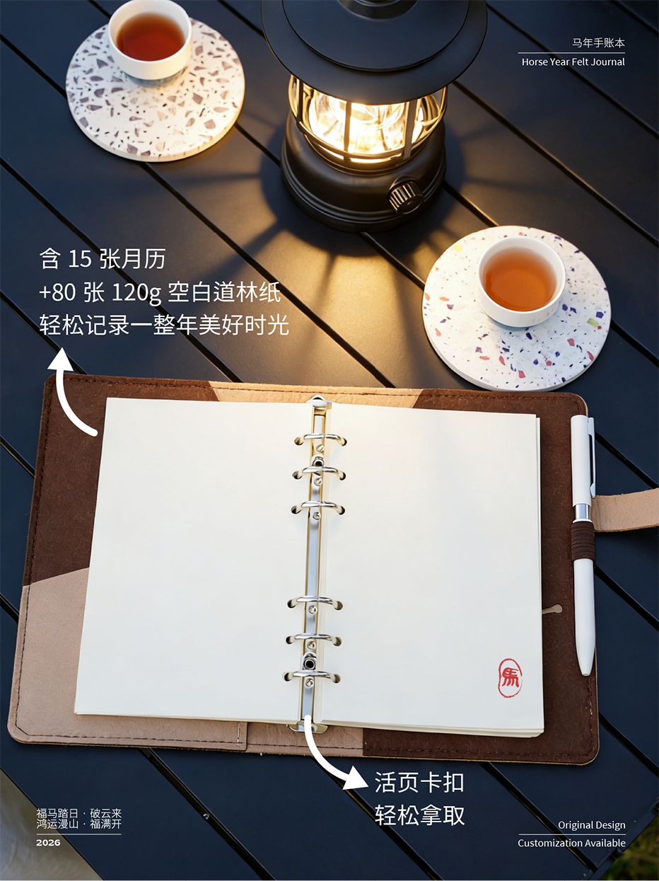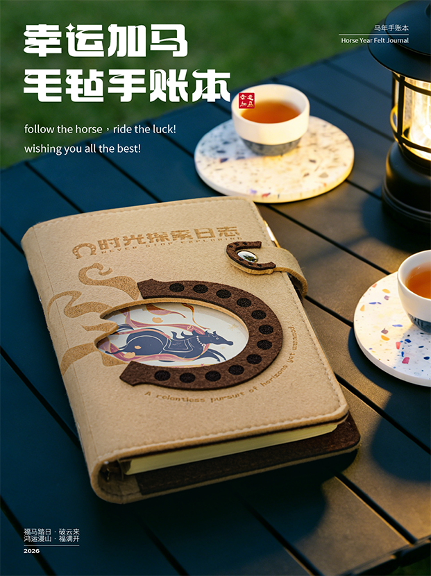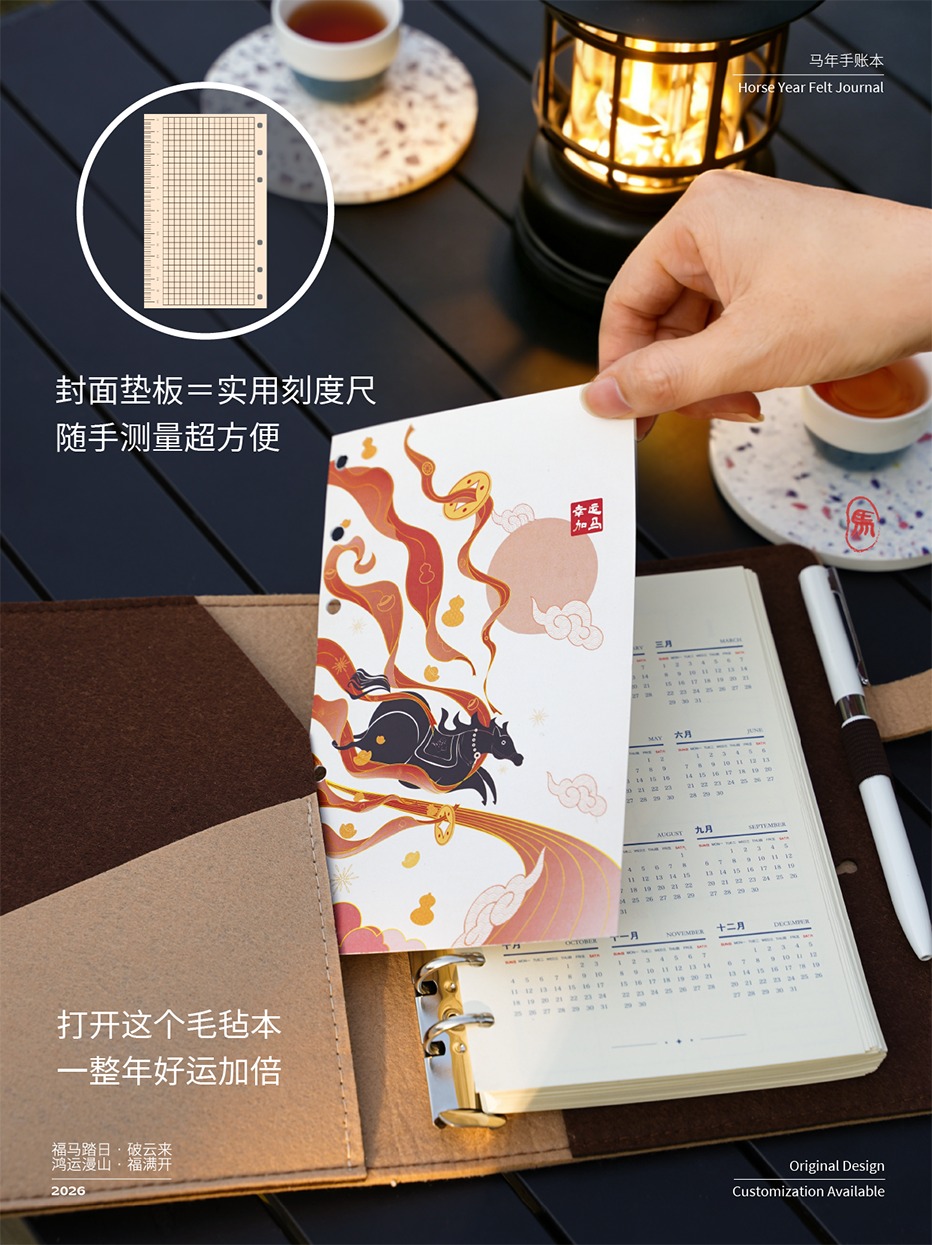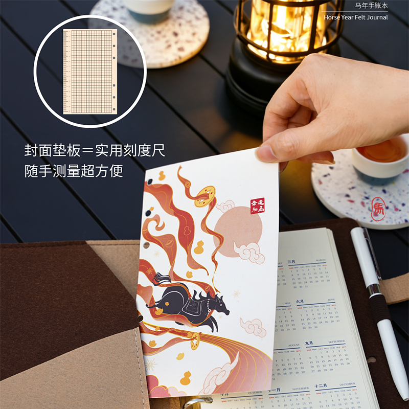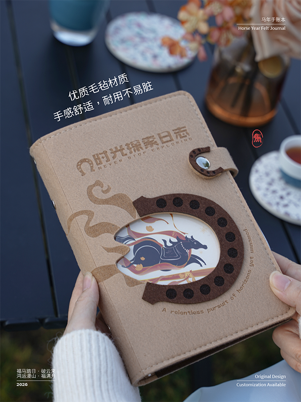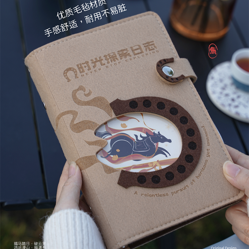 贪吃猫文创 马年好运笔记本复古风创意毛毡