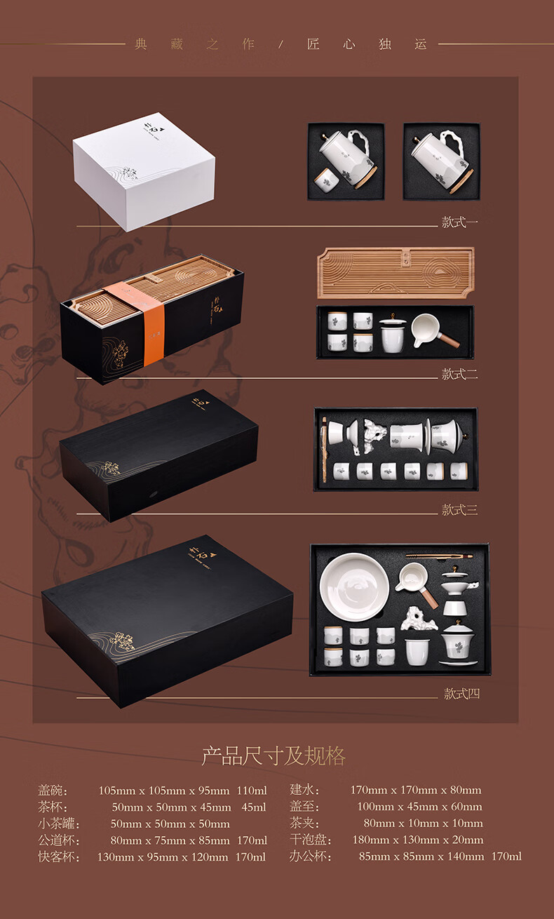 配置:侧把壶*1、盖碗*1、茶杯*6、竹质盖子*2、过滤*1、过滤底托*1、石头盖置*1、茶洗*1、茶夹*1、