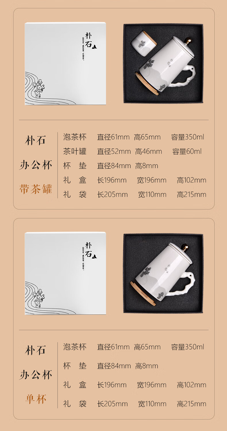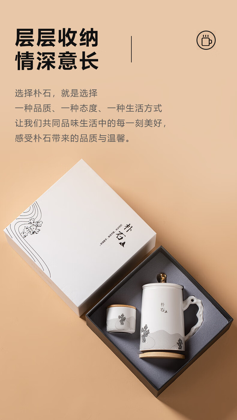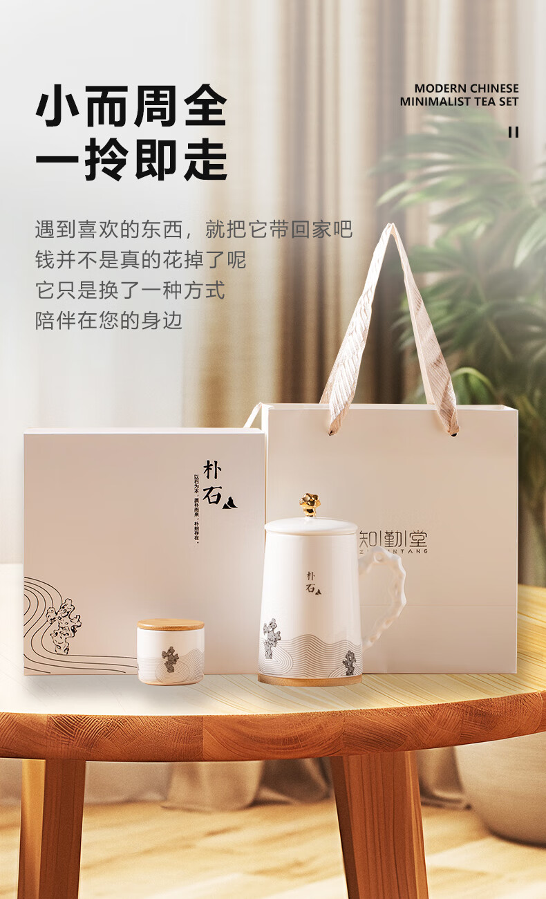 知勤堂 朴石办公杯带小茶罐礼盒包装
