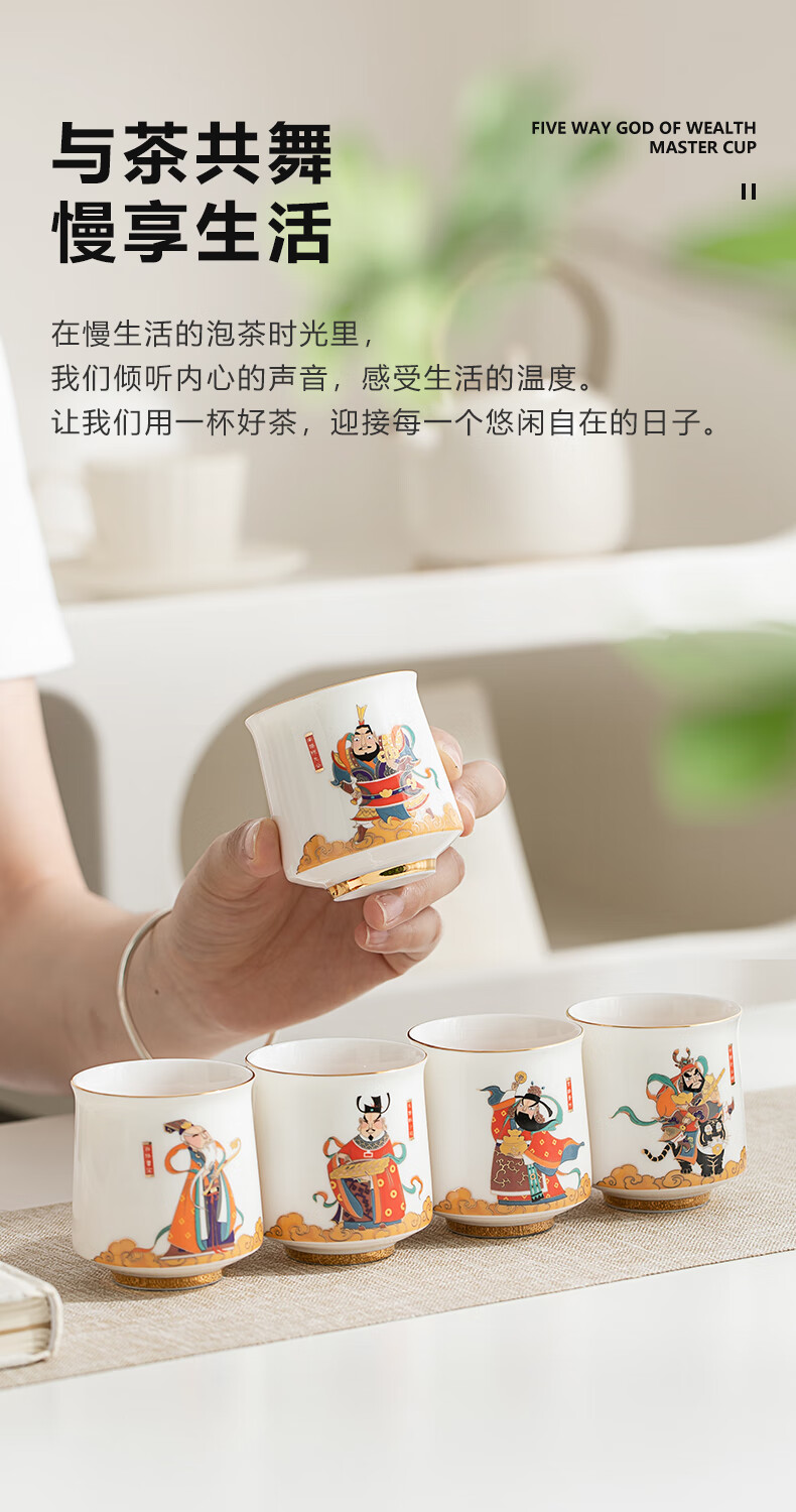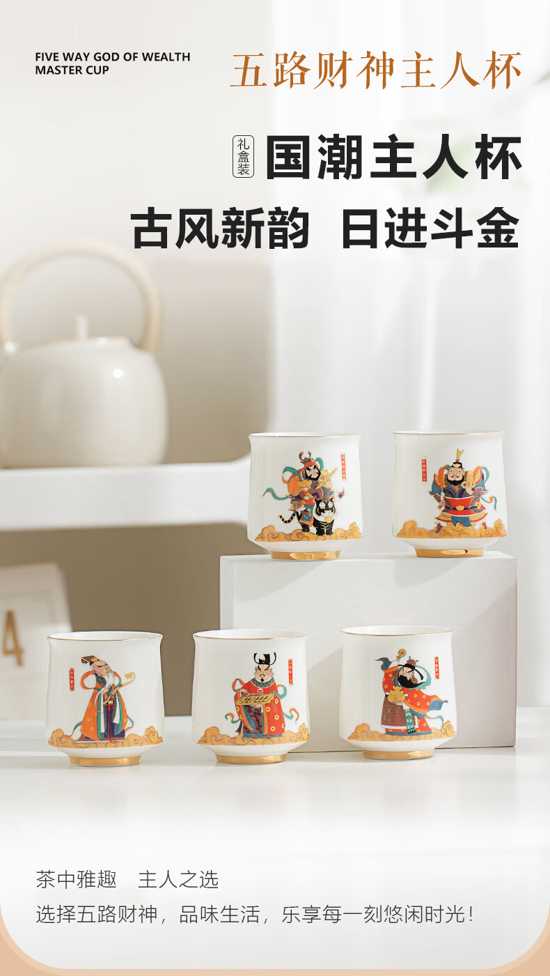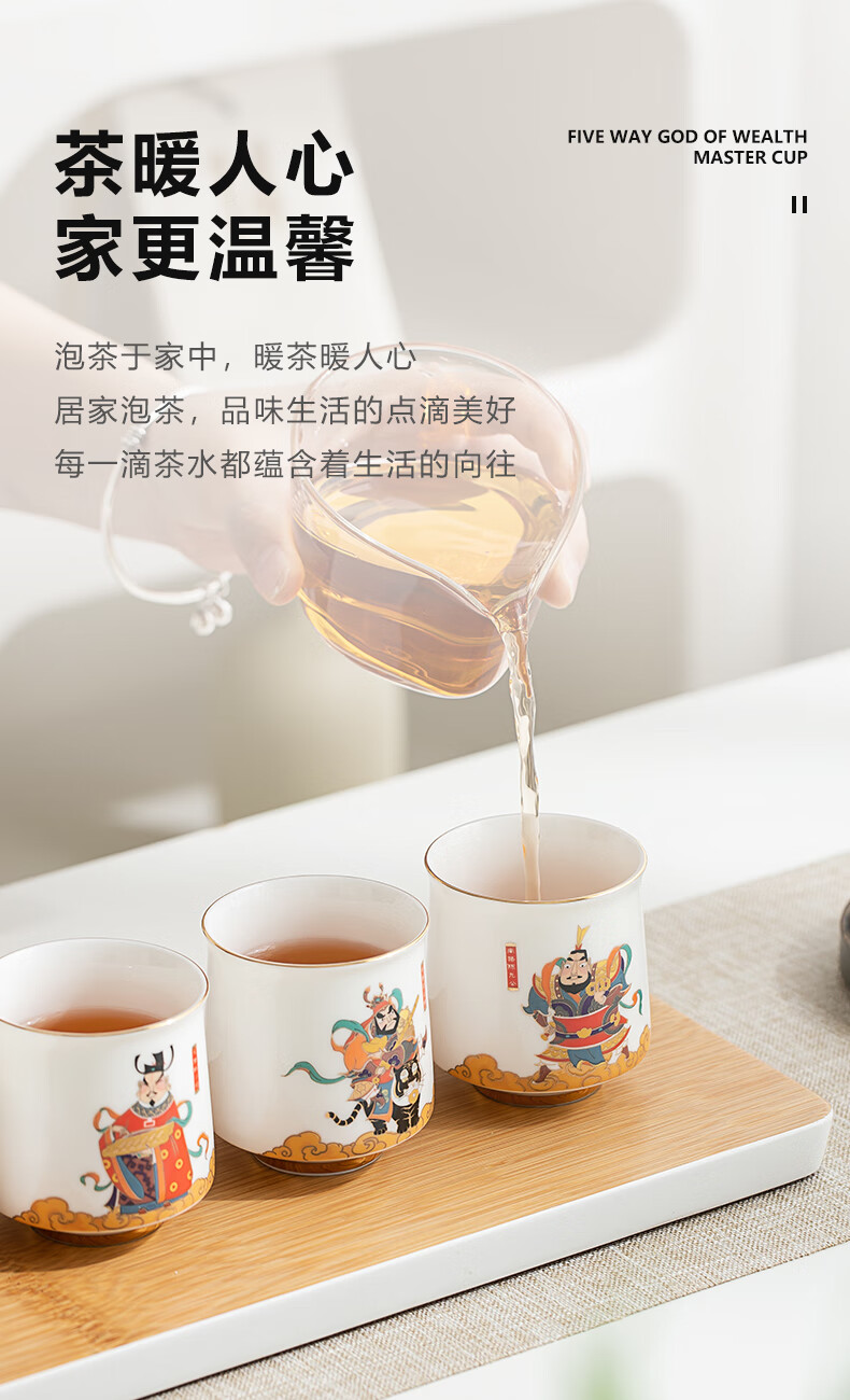 知勤堂 五路财神套组款主人杯泡茶杯子