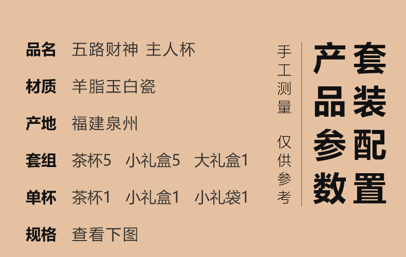 配置:主人杯*5、杯盖*1、过滤*1、随身福袋*1、