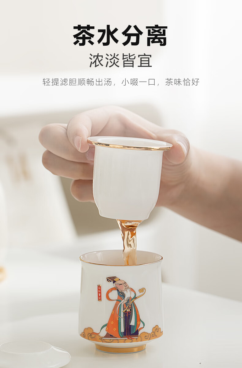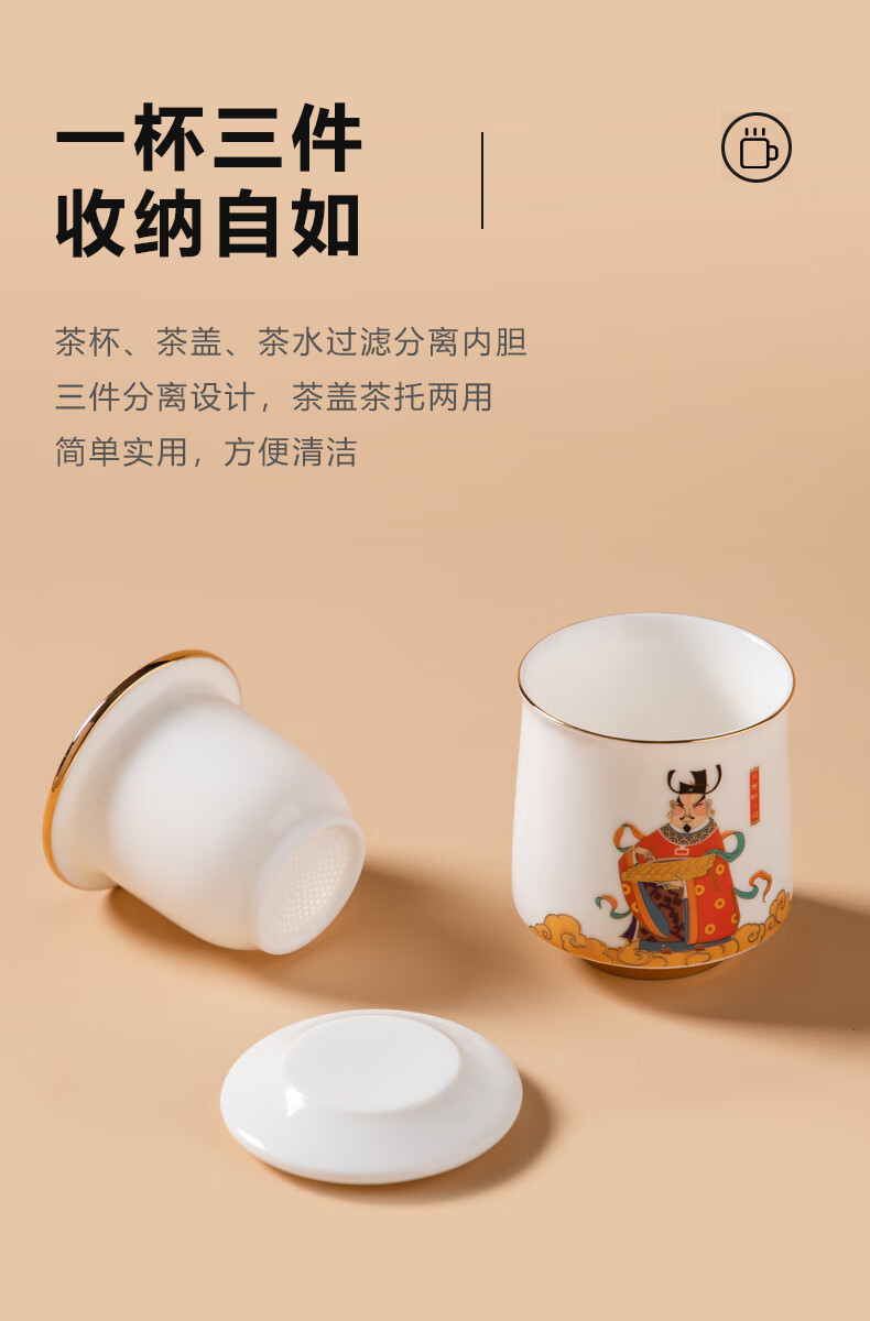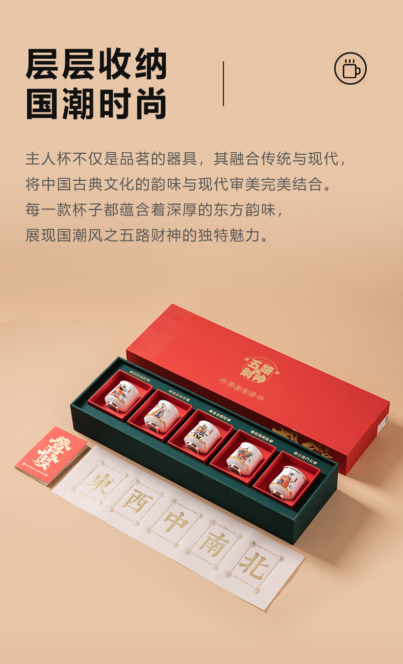 五路财神:将中国神话人物萌化后融入茶器的设计元素中;通过原创画师一笔一划的勾勒将传统国风文化展现眼前。;随身携带走哪都发财