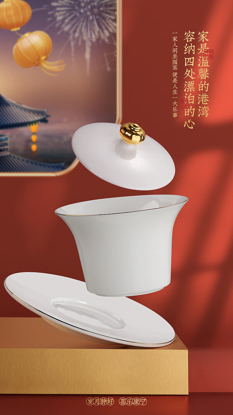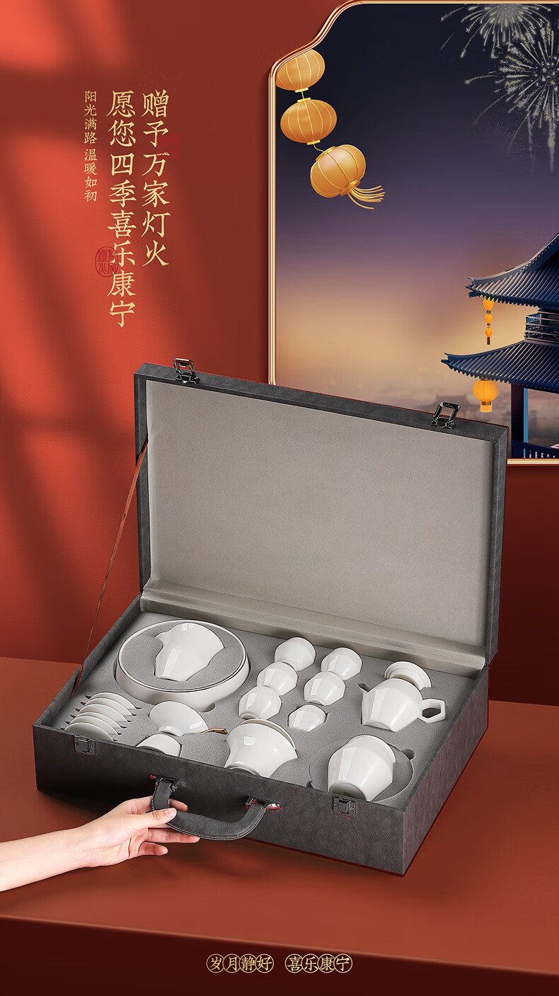 知勤堂 万家灯火白瓷茶具套装高档泡茶器