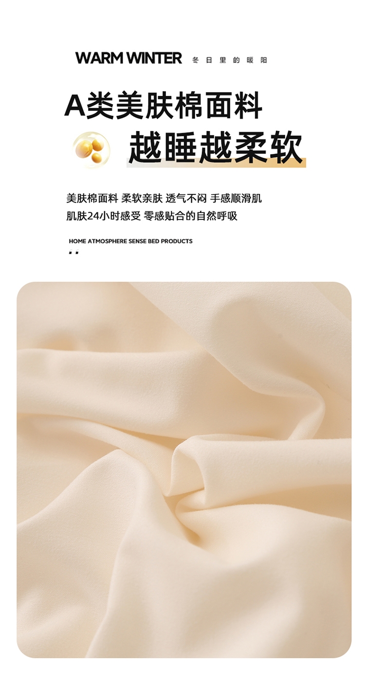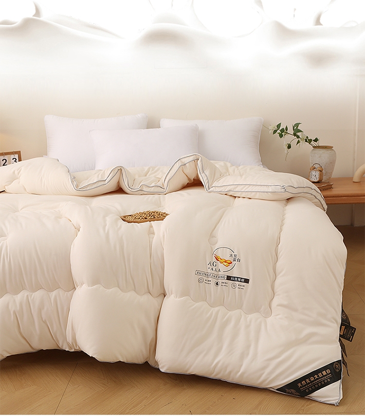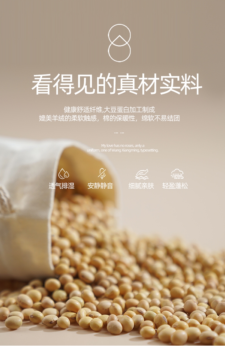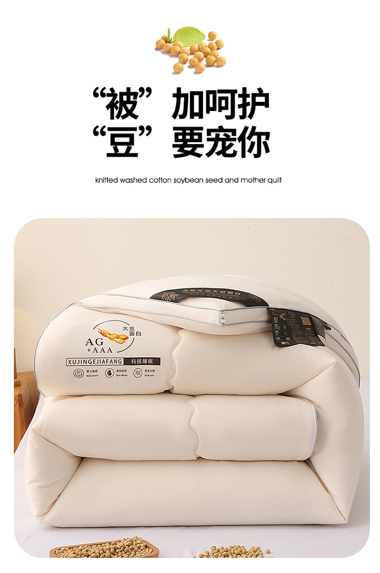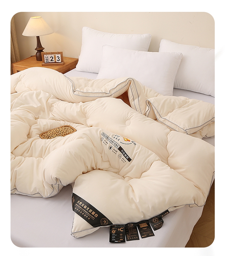 肆意舒睡柔软触手可得 美肤棉大豆被系列;美肤棉面料 柔软亲肤 透气不闷 手感顺滑肌 ;10%大豆纤维+90聚酯纤维配比填充羊绒般手感