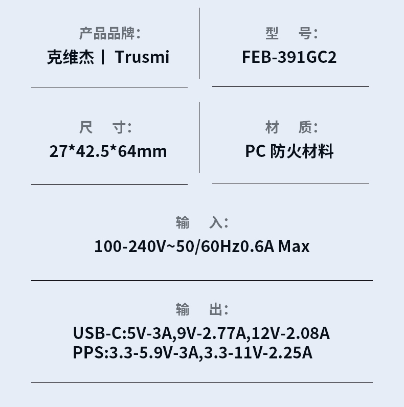 克维杰 25WC口快充充电器套装带线FEB-391GC2