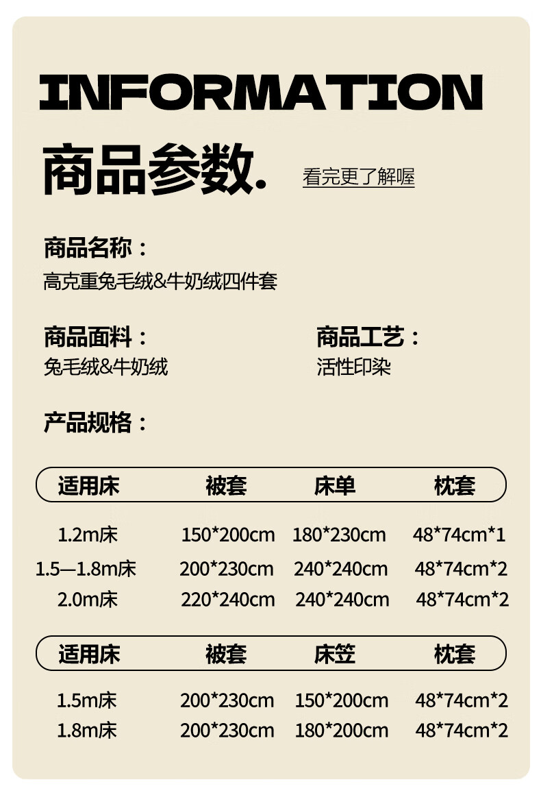 配置清单:被套*1、床单*1、枕套*2、包装*1