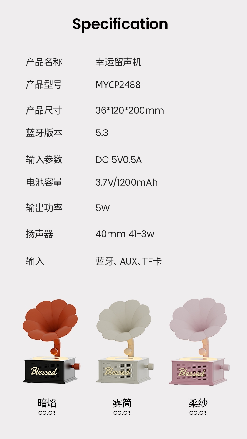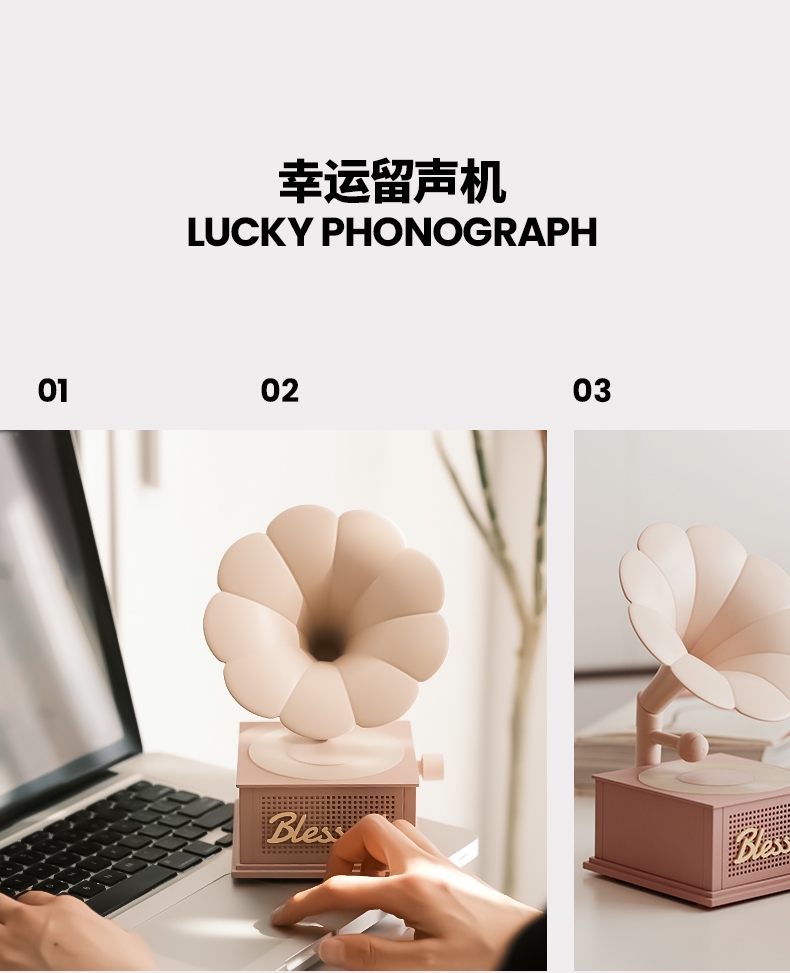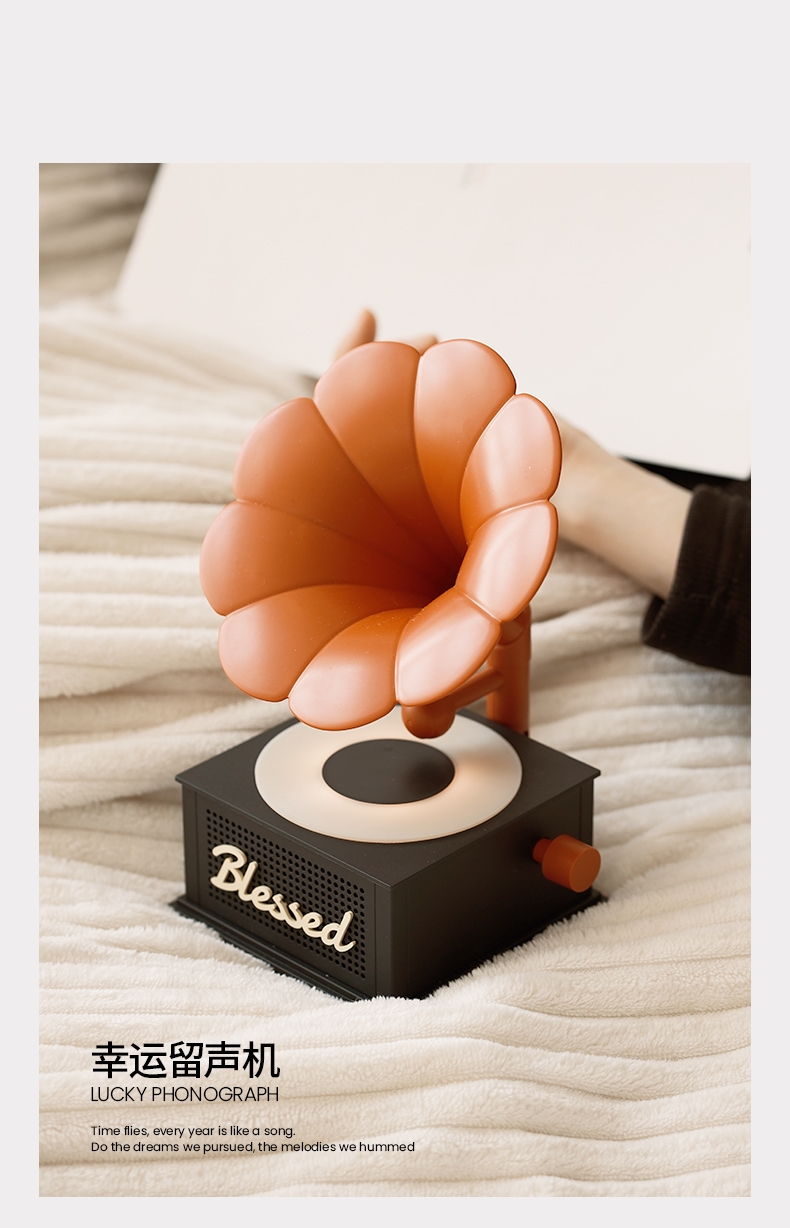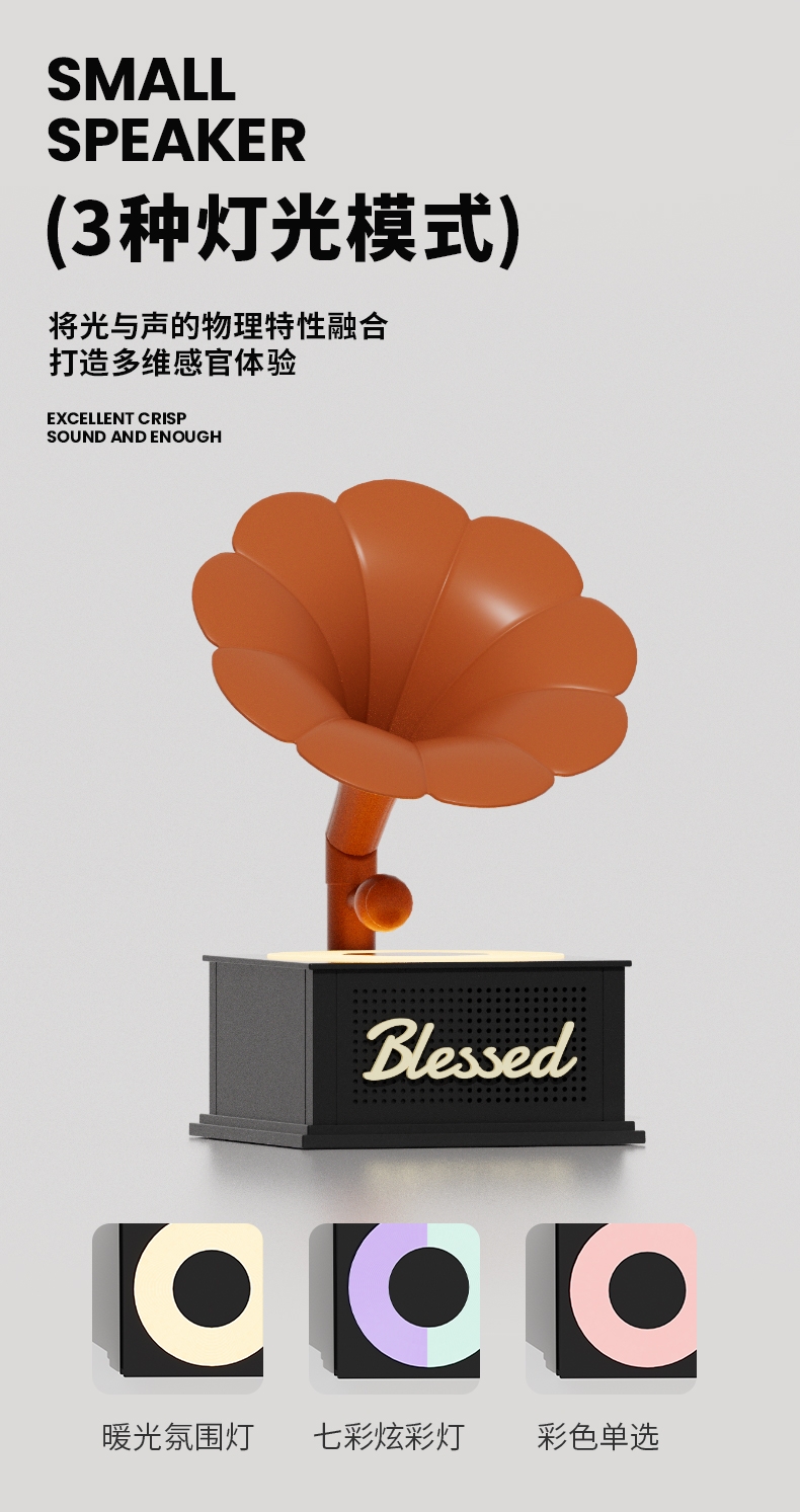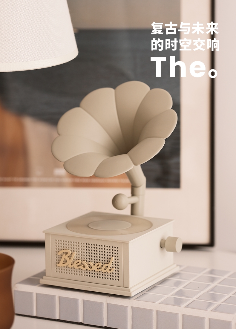 白噪音+氛围灯多功能蓝牙音响;转盘随音乐转动,仪式感满满;复古外观设置,高颜值摆件,送礼佳选