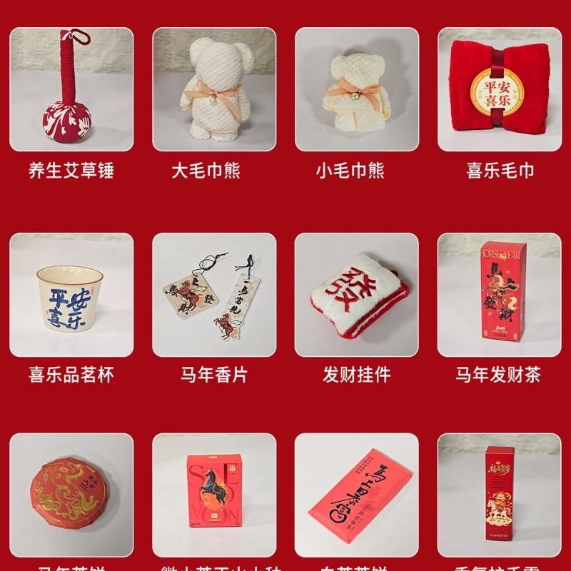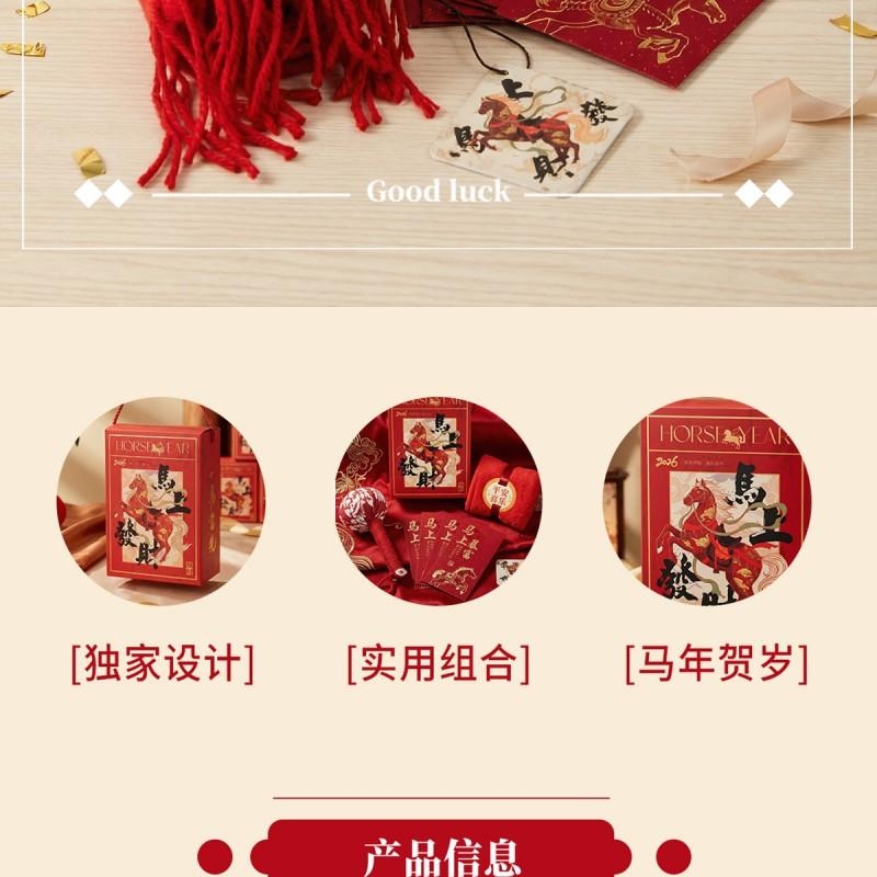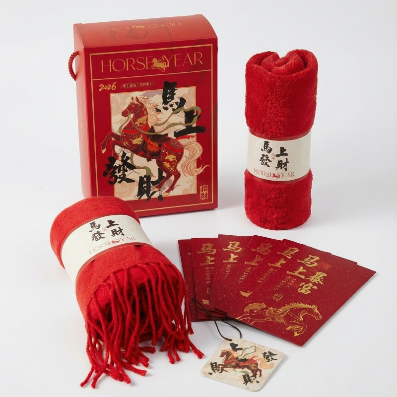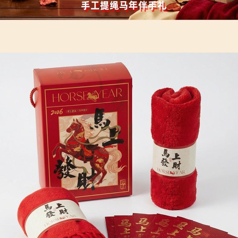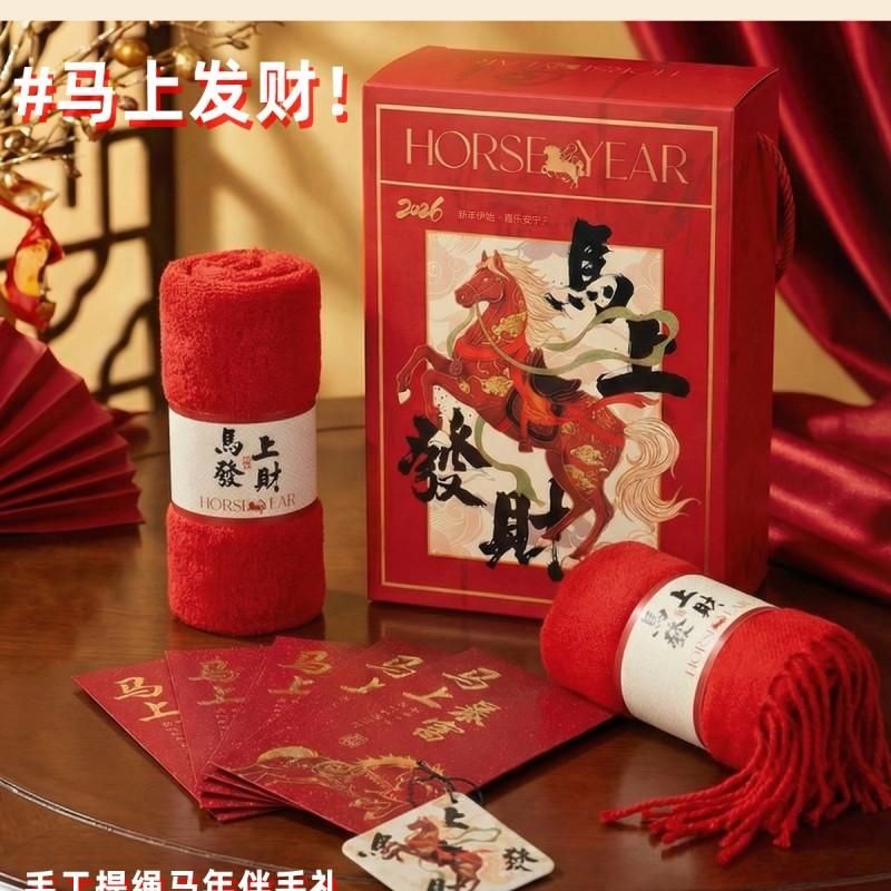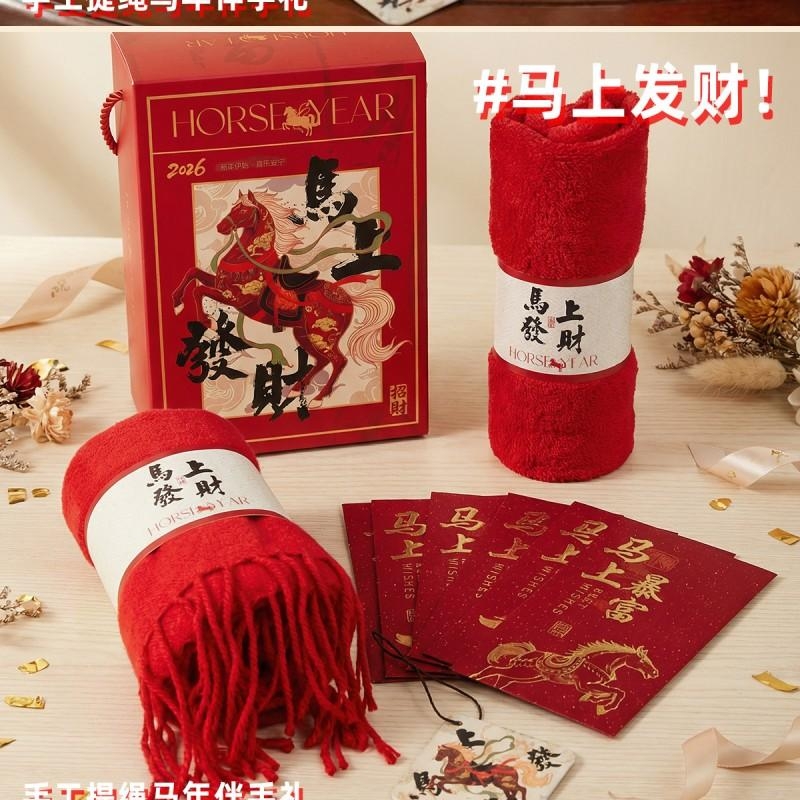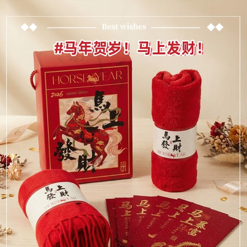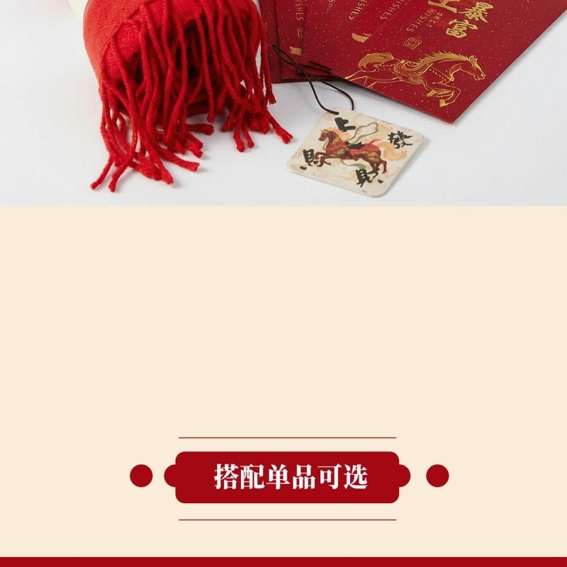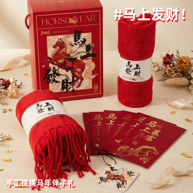 组合:马年红包*6张、马上发财毛巾、马上发财仿羊绒围巾 220*33cm、马上发财香薰石膏香挂
