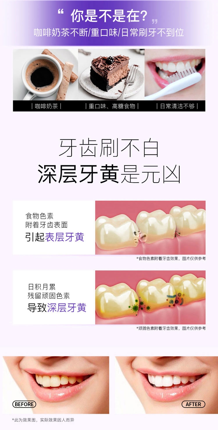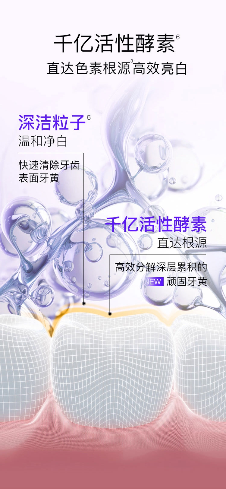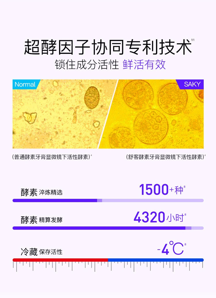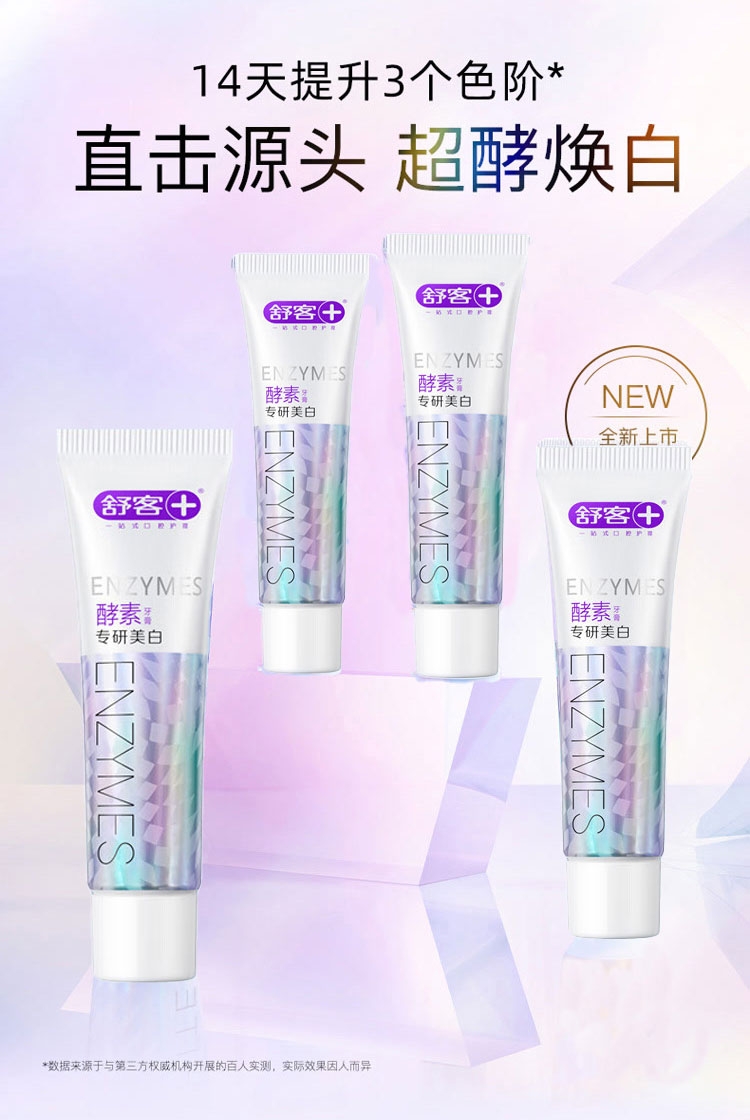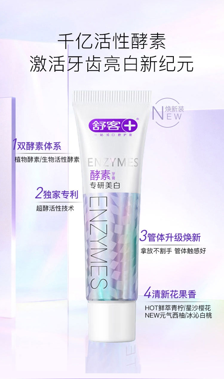 含有蛋白酶酵素成分;帮助清洁口腔、清新口气;减少口腔内菌斑和牙渍生成