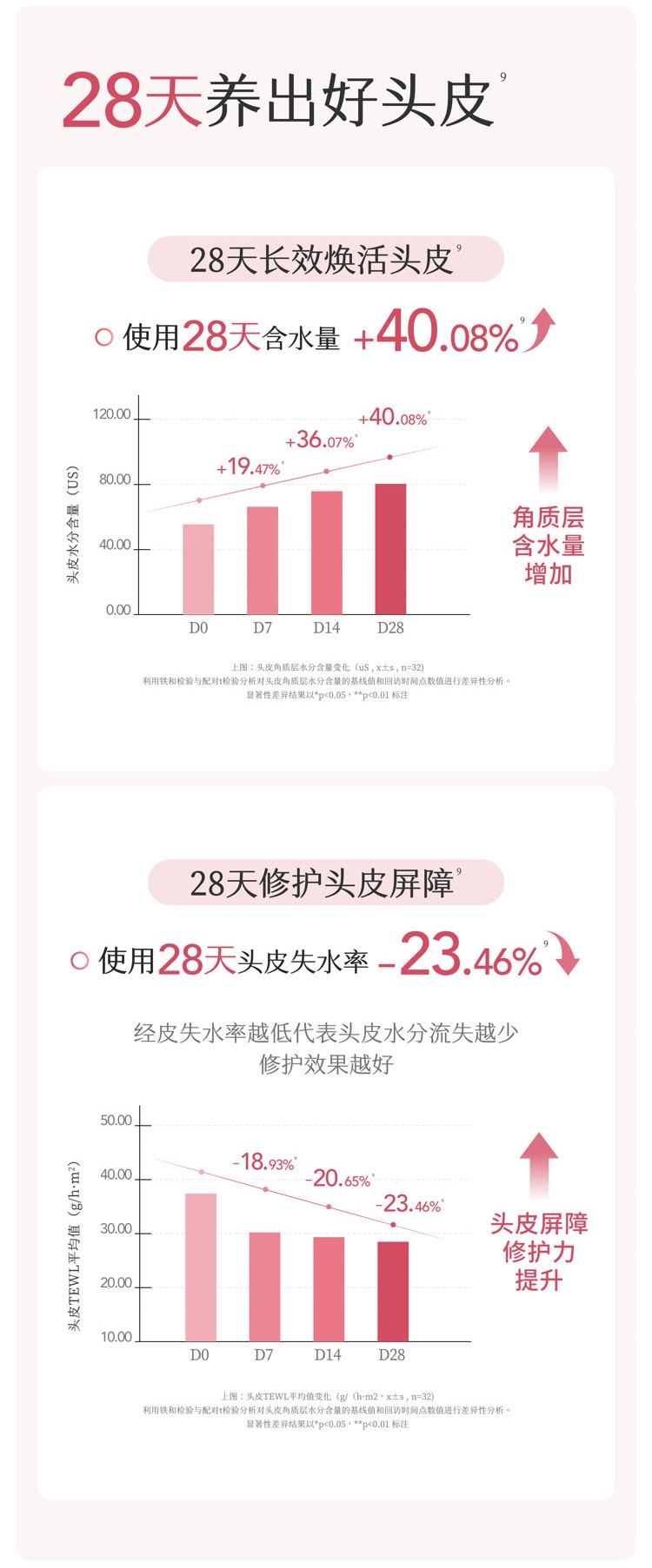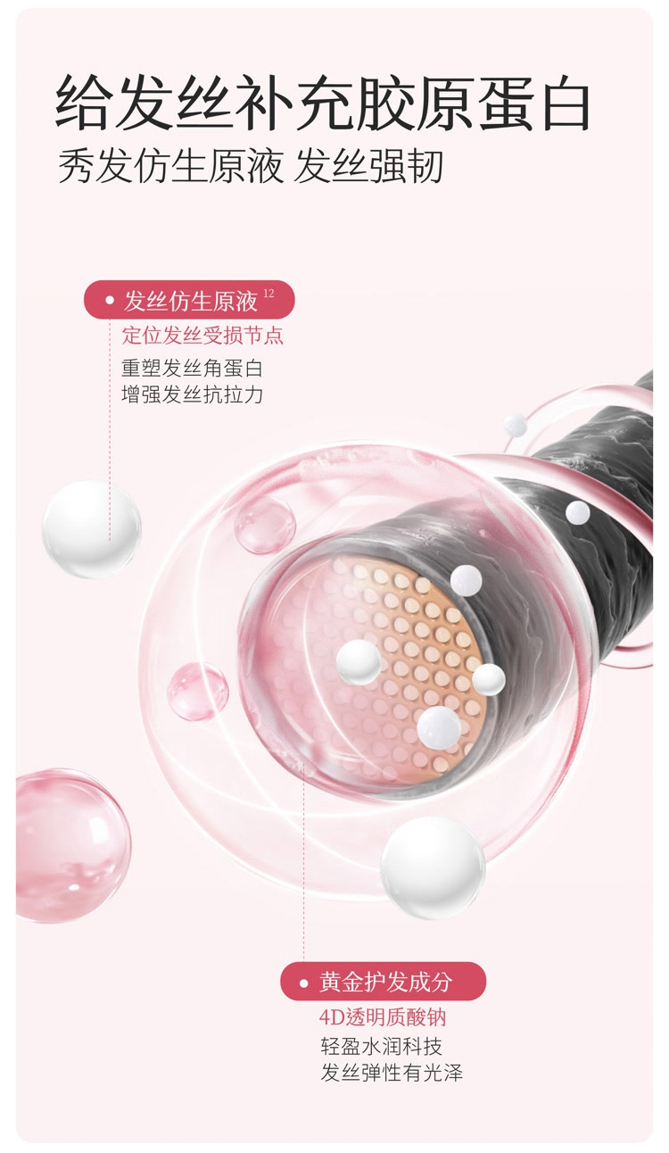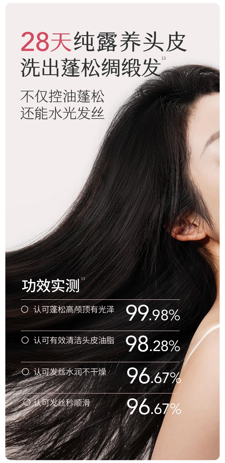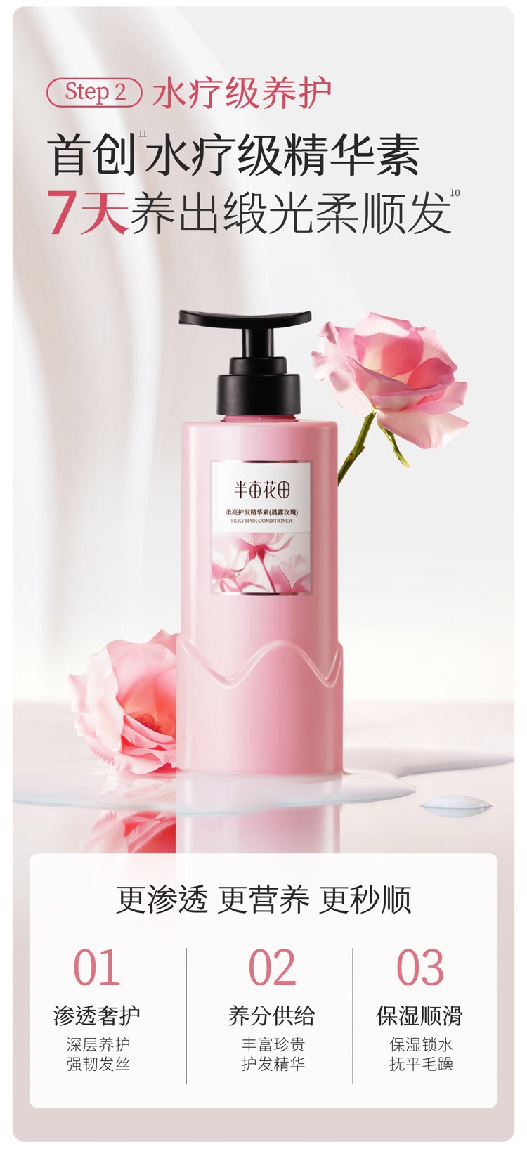 玫瑰纯露因子,焕发头皮生命力,发丝蓬发活力;玫瑰香氛清新持久,干枯发质和频繁染烫人群的护发必备;轻盈水润科技 发丝弹性有光泽