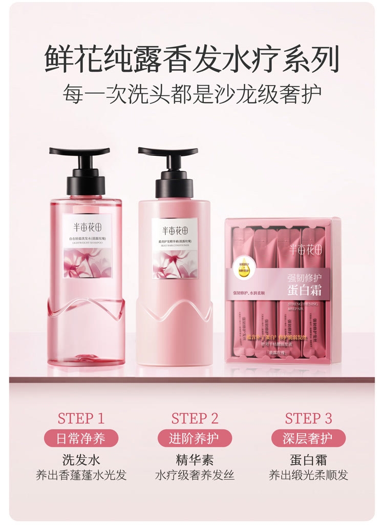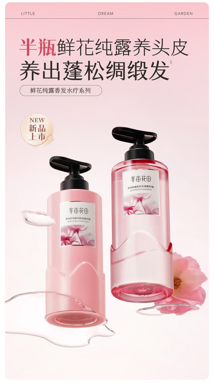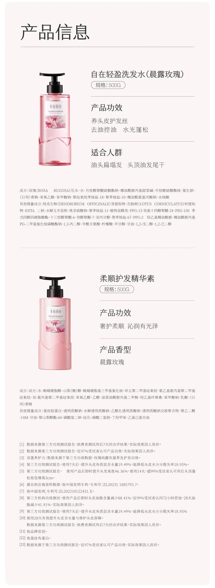配置清单:自在轻盈洗发水(晨露玫瑰)500g + 柔亮护发精华素(晨露玫瑰)500g
