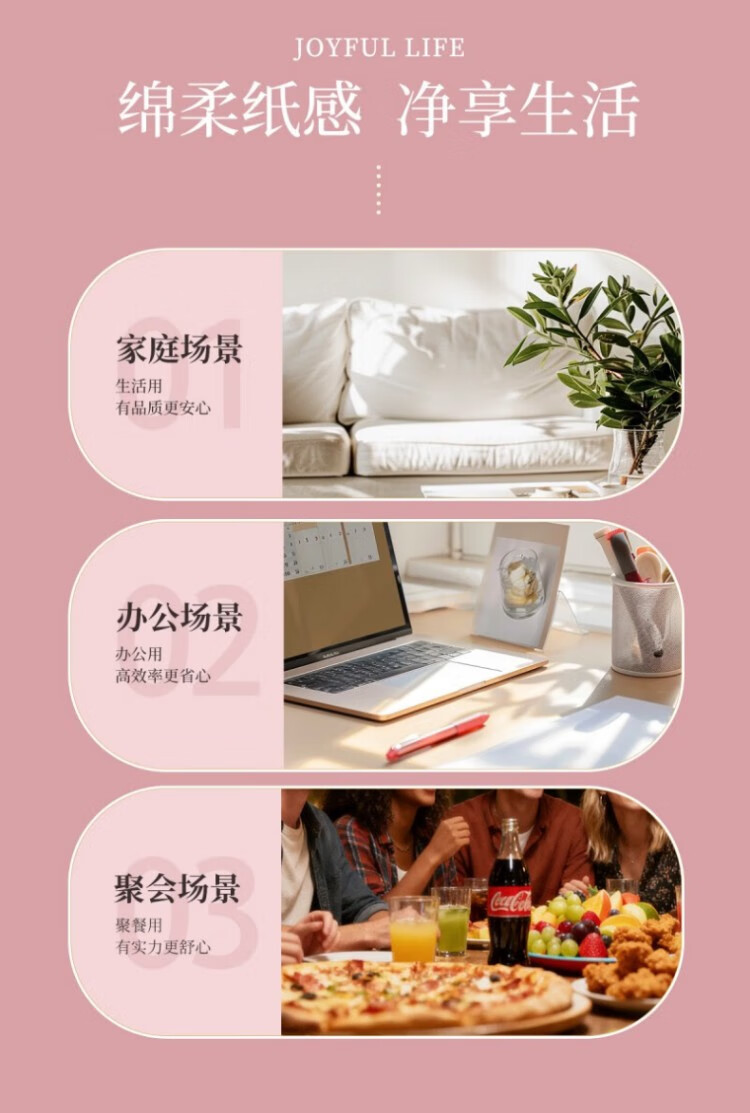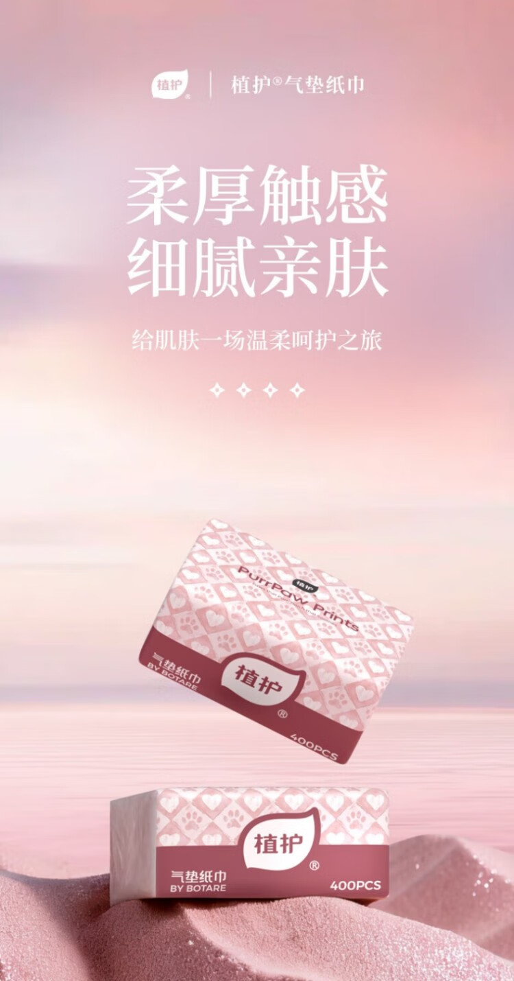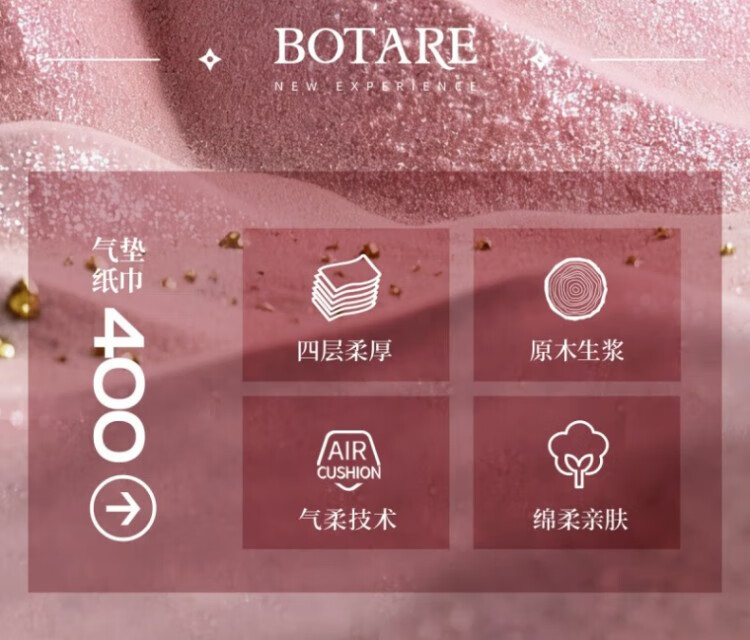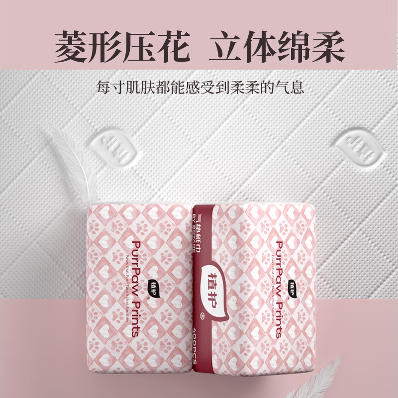 原生木浆 进口品质;轻盈压花 臻享品质;柔软触感 亲如肌肤
