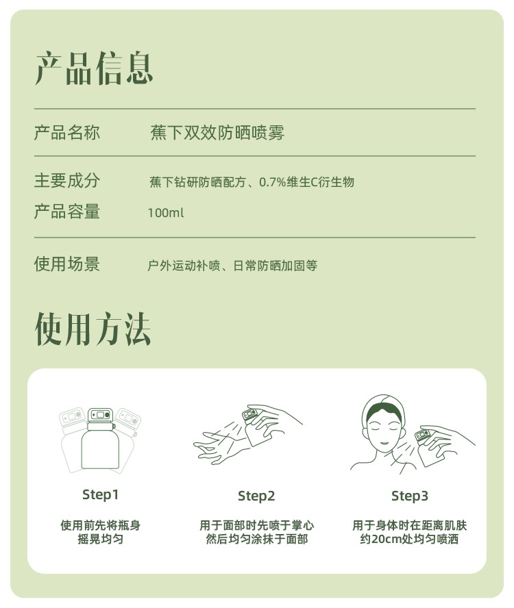 主要成分:蕉下钻研防晒配方、0.7%维生C衍生物