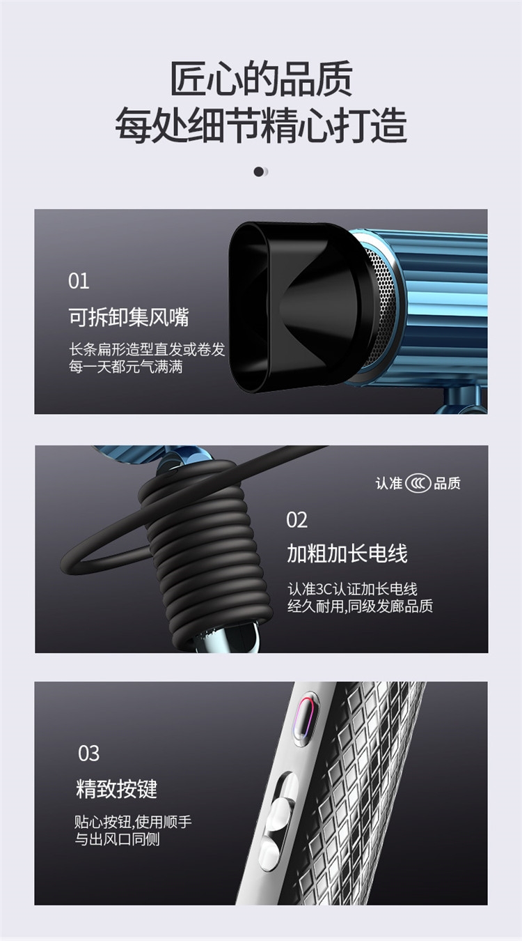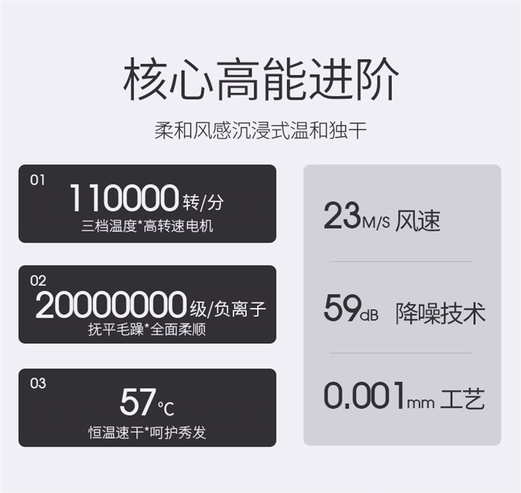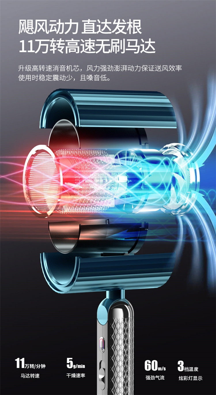 3种颜色,演绎多彩生活;两亿浓度双离子滋养发芯 抚平毛躁;多元护发体验 三种模式一键切换